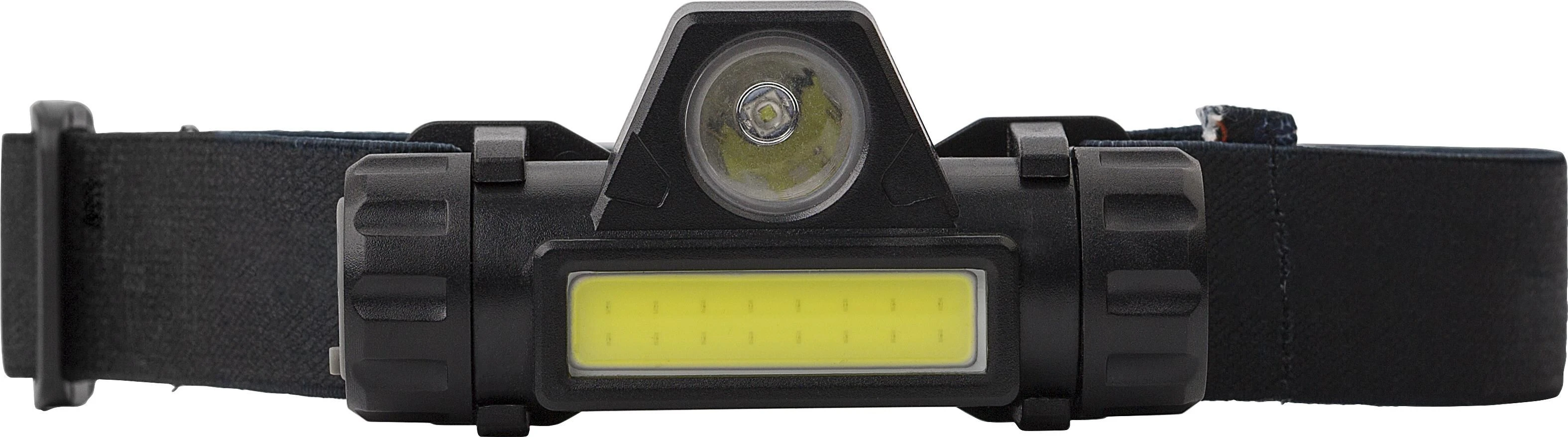 €5.41ABS čeona svjetiljka s jednom LED i COB svjetlom, prebacivanje između svjetala pritiskom na gumb, svjetiljka se može nagnuti i lako se odvaja od trake za glavu, punjiva putem USB-C priključka