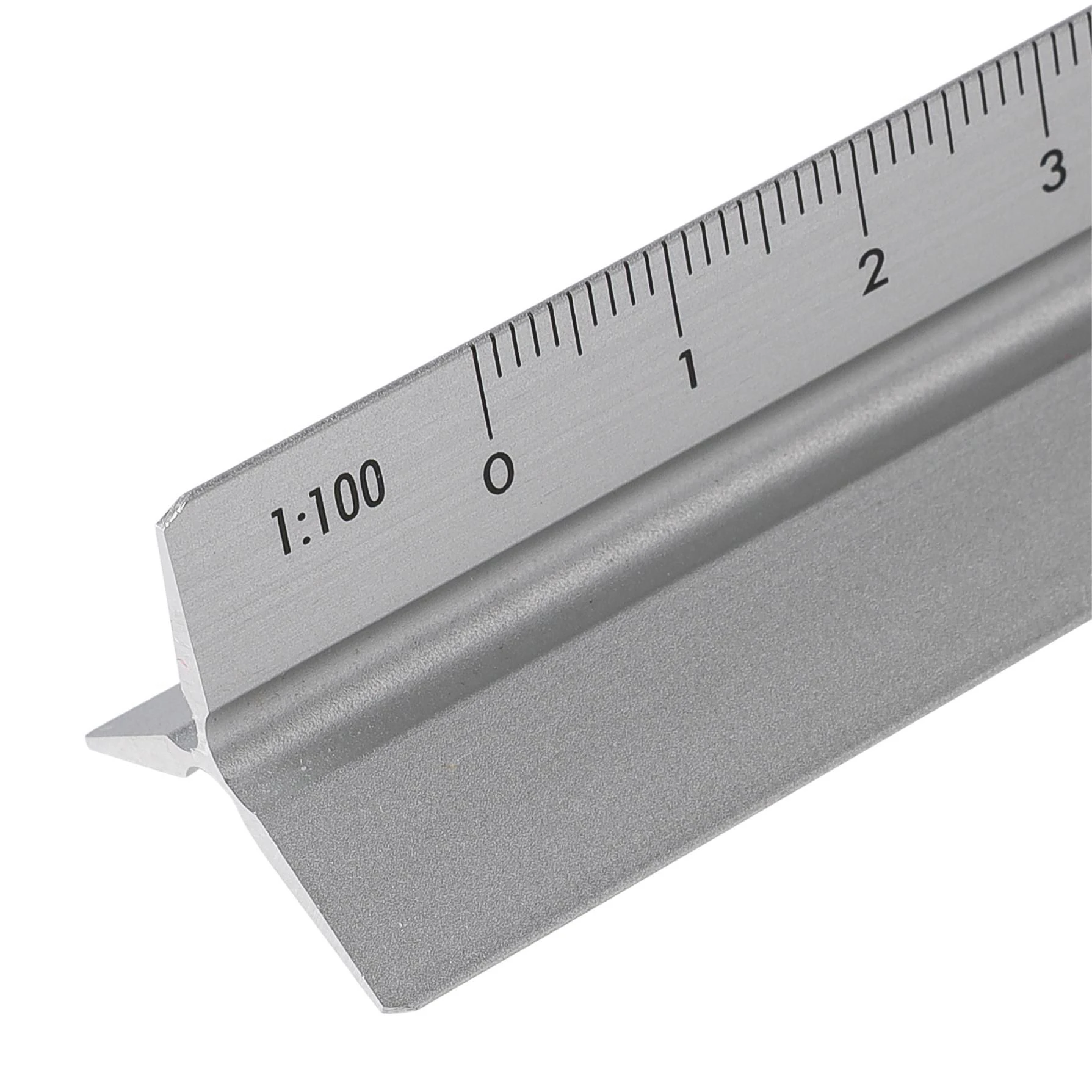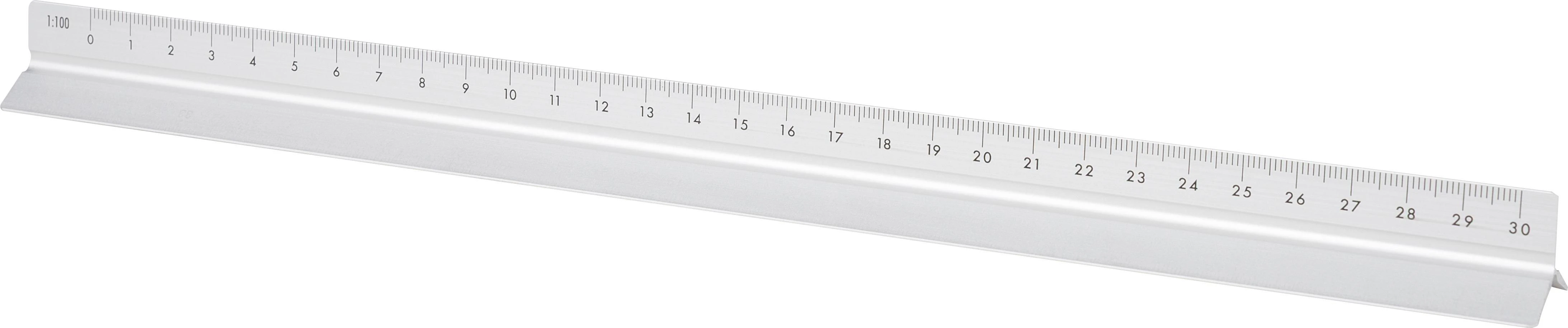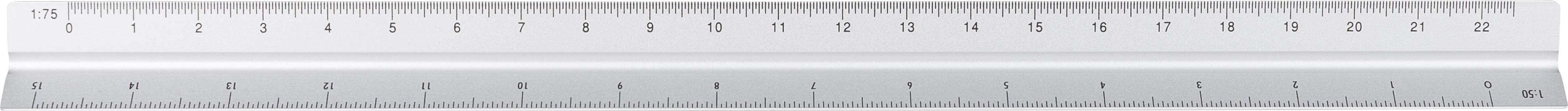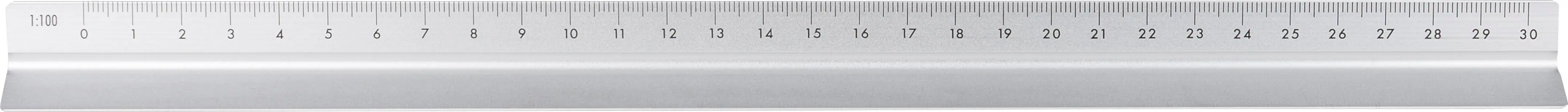 €2.95Aluminijsko trokutasto ravnalo duljine 30 cm s više mjerila: 1:20, 1:25, 1:50, 1:75 i 1:100, jedna strana bez mjerila za graviranje, s oznakama u centimetrima i inčima, pojedinačno pakirano u smeđu kartonsku kutiju