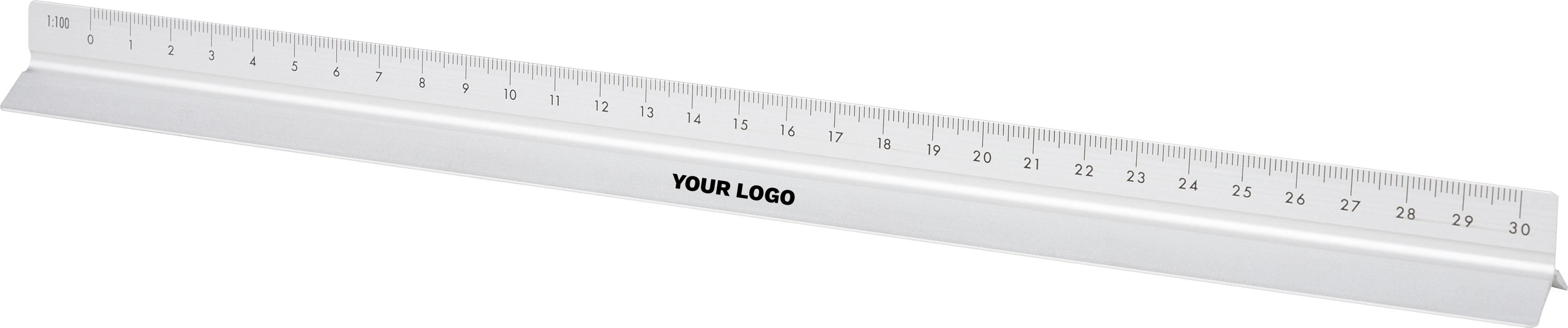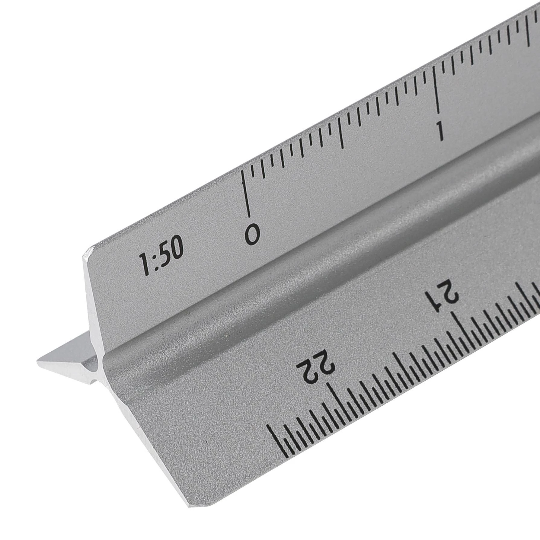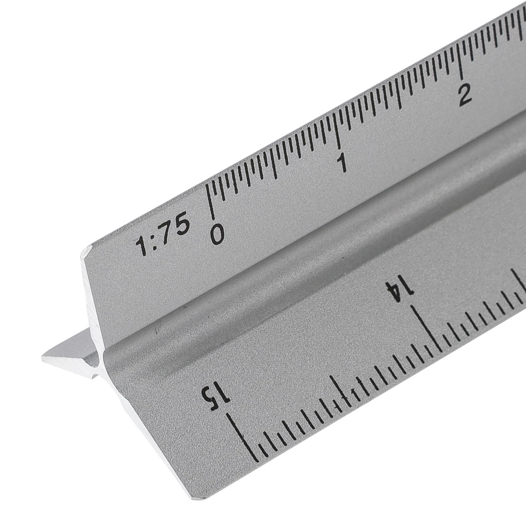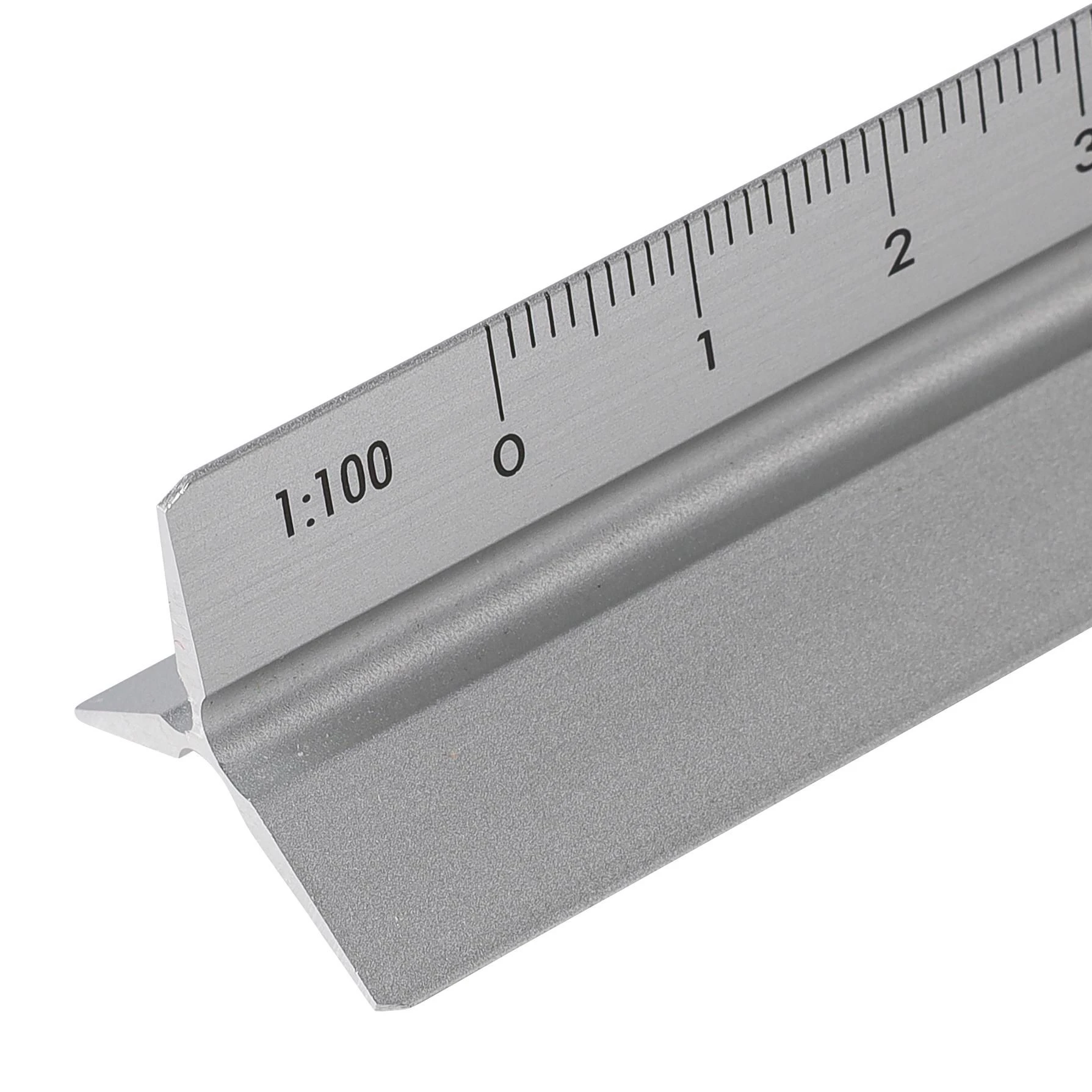 €2.95Aluminijsko trokutasto ravnalo duljine 30 cm s više mjerila: 1:20, 1:25, 1:50, 1:75 i 1:100, jedna strana bez mjerila za graviranje, s oznakama u centimetrima i inčima, pojedinačno pakirano u smeđu kartonsku kutiju