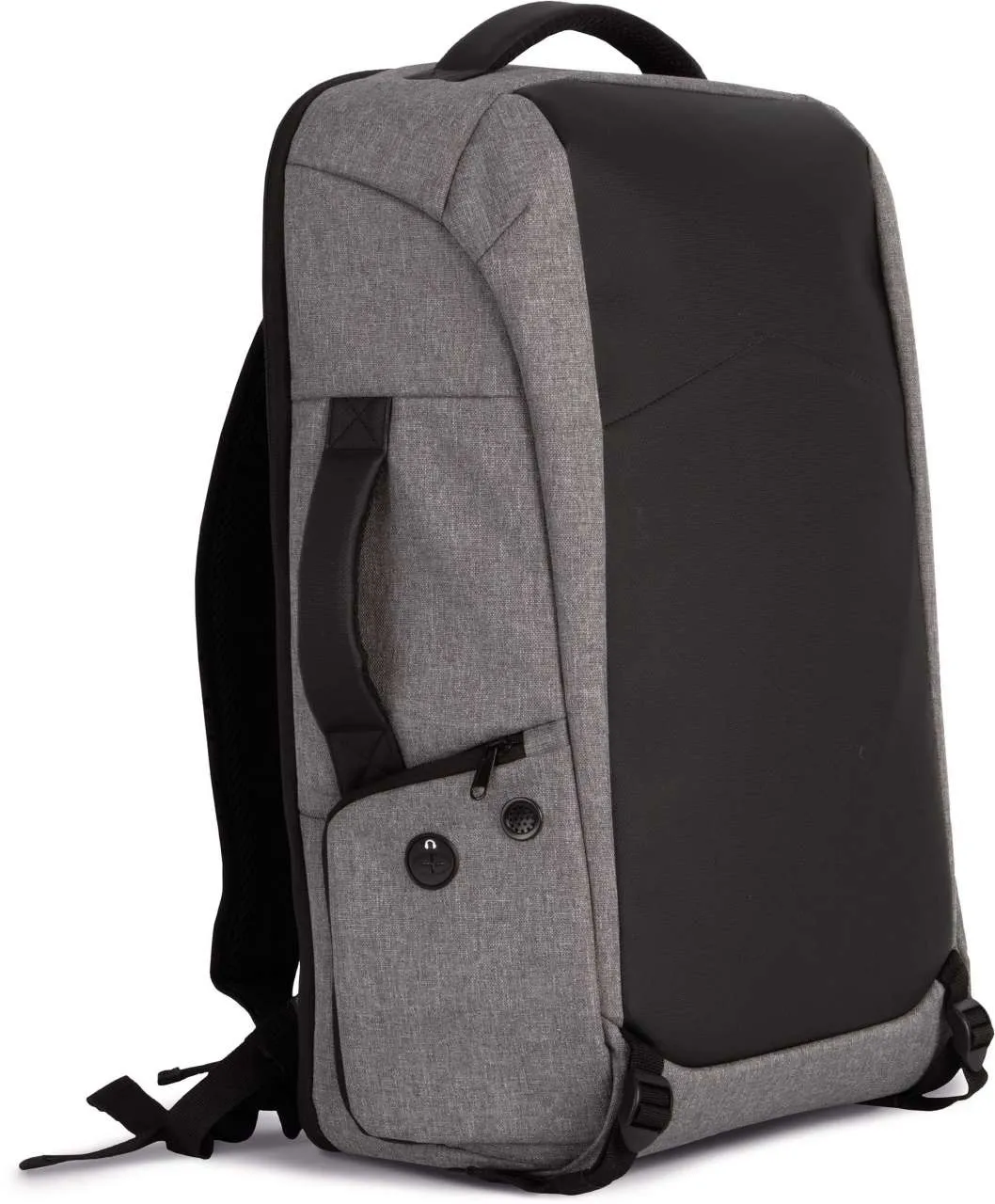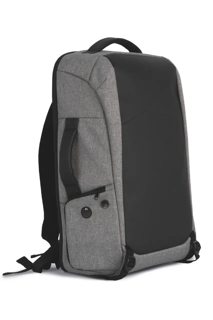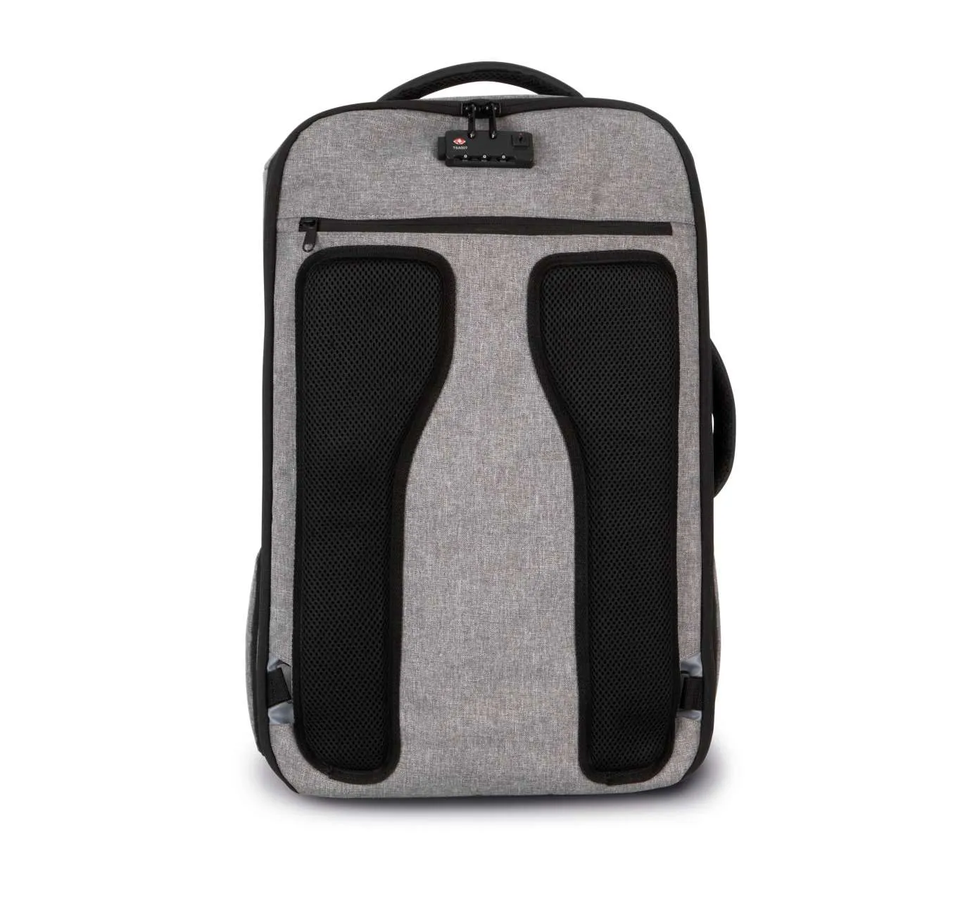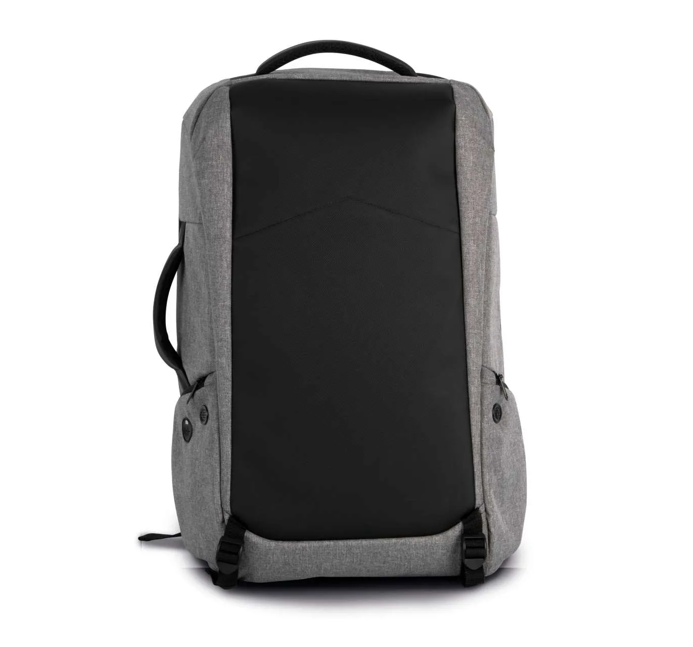€55.87100 % poliester od čega 50 % reciklirani poliester kombinirani ruksak/putna torba za radnu odjeću KI0889 torba ima TSA patentni zatvarač s kombinacijom na stražnjem šavu za dodatnu sigurnost bočna džep s protuprovalnim kabelom za pričvršćivanje torbe za stol ili nogu stolice i unutarnji džep s RFID zaštitom protiv neovlaštenog skeniranja podataka s čip kartice ili kreditne kartice podstavljena leđa, podstavljene podesive naramenice i podesivi prsni remen za lakše nošenje, dvije trake ispod torbe za nošenje gornjih majica i jakni, dva bočna džepa, jedan bočni džep za punjenje s USB priključkom za povezivanje uređaja za punjenje i micro USB priključak (kabel uključen) na bočnoj strani torbe za povezivanje s powerbankom dvije džepove s patentnim zatvaračem na naramenicama i odvojivi podstavljeni remen za rame koji omogućuje pretvaranje ruksaka u putnu torbu glavni pretinac odvojen je od stražnjeg pretinca mrežom s patentnim zatvaračem za odlaganje odjeće stražnji pretinac za prijenosno računalo do 15'' i podstavljeni pretinac za tablet do 11'', mrežasti džep i dvije odvojive torbice s patentnim zatvaračem za kabele i dodatke