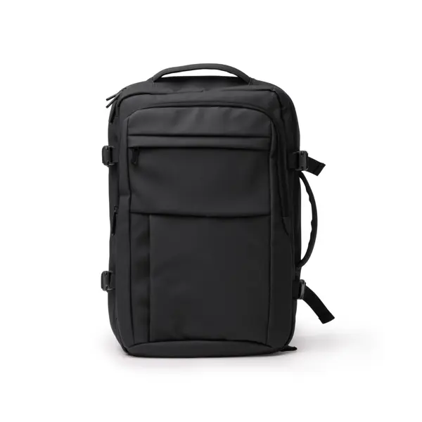 Putni ruksak od PU kože podstavljena leđa i naramenice prednji pretinac s unutarnjim džepovima mali prednji džep glavni pretinac s mrežastom pregradom na patentni zatvarač poseban dvostruki pretinac za prijenosna računala do 15 inča i druge uređaje podesive dimenzije zahvaljujući proširivom patentnom zatvaraču remen za pričvršćivanje na kofer kapacitet 30 l