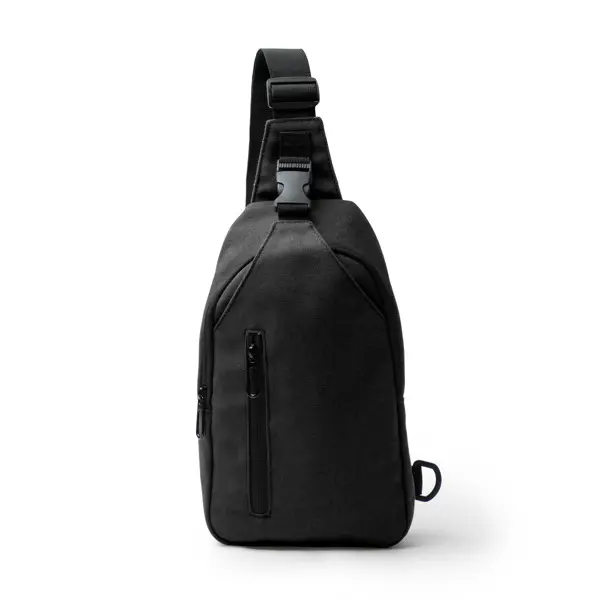 €6.31Recycled canvas cotton shoulder bag. Features adjustable strap with carabiner, as well as two anchor points at the ends for greater comfort in use. Includes a main compartment with zip closure and two smaller exterior pockets, one with zip closure and the other with buckle closure. Padded back panel.