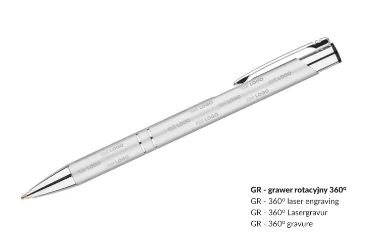 KOSMOS kemijska olovka je pristupačna verzija poznatog dizajna kemijske olovke. Kvalitetno metalno tijelo sada je dostupno po još boljoj cijeni zahvaljujući upotrebi jeftinije tehnologije. Kemijska olovka ima aluminijsko tijelo s dva metalna prstena.