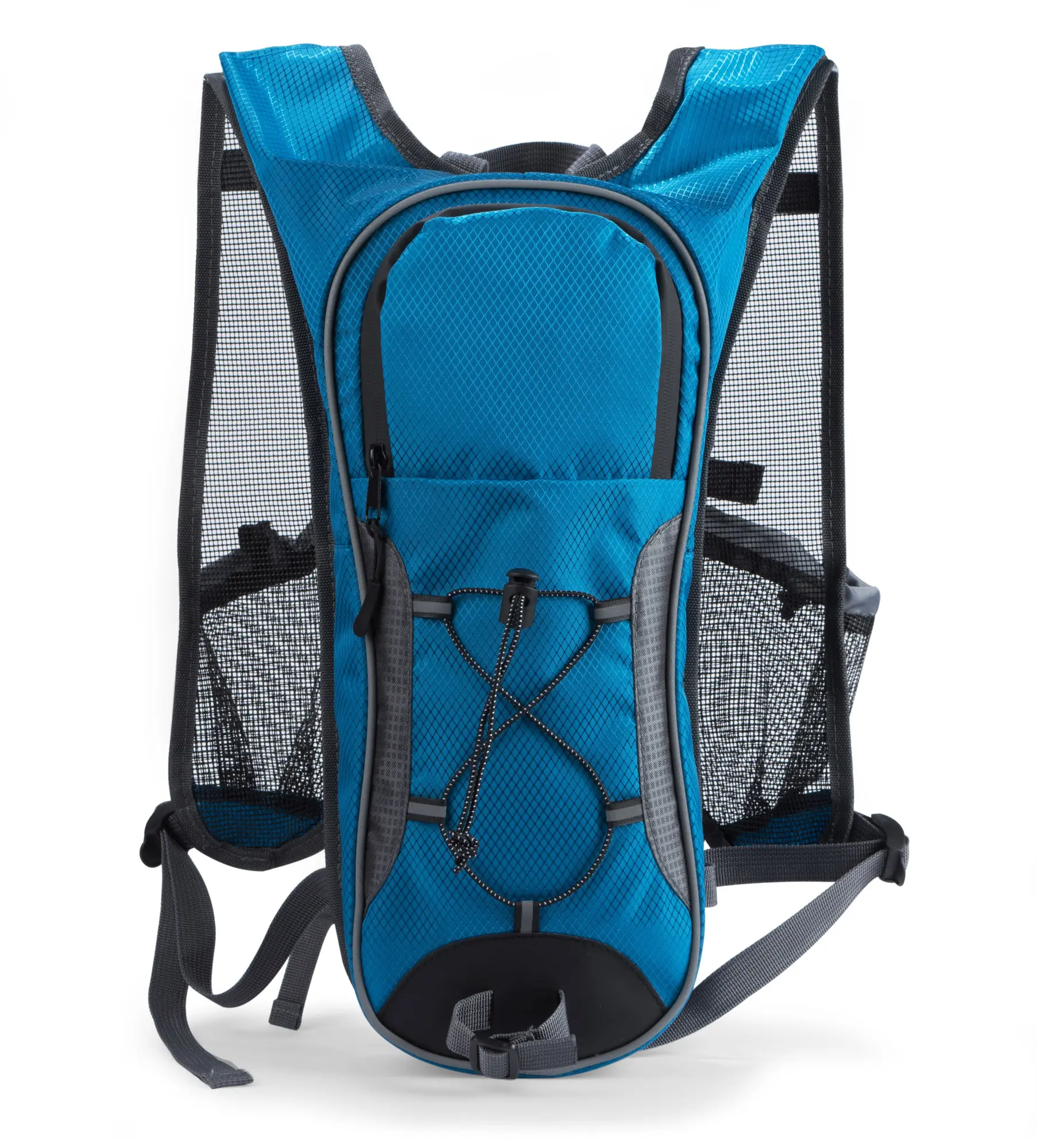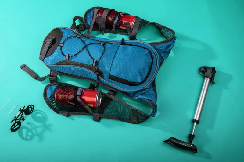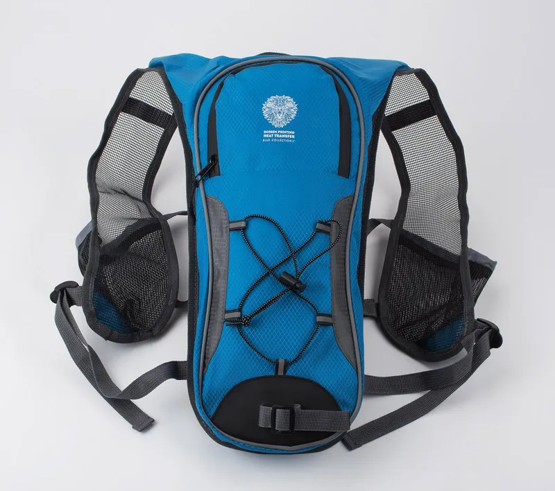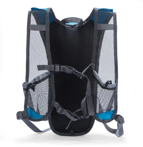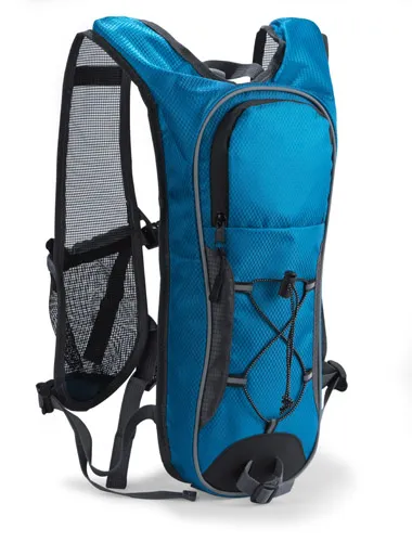 Biciklistički ruksak s prostorom za bocu, mrežaste naramenice za prozračnost, vodootporni zatvarač i prednja traka s remenima, dva prsna remena za stabilnost i udobnost, izrađen od 420D poliestera, kapacitet oko 3,2 l, mogućnost veza uz individualnu ponudu