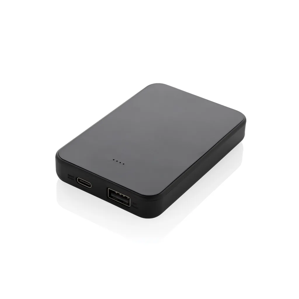 5.000 mAh powerbank džepne veličine s USB C ulazno/izlaznim priključkom i dodatnim USB A priključkom, kućište od RCS certificirane reciklirane ABS plastike, RCS (Recycled Claim Standard) potvrđuje udio recikliranog materijala kroz cijeli lanac opskrbe, ukupni udio recikliranog materijala: 25% prema ukupnoj masi proizvoda, potpuno napunjen powerbank može napuniti mobilni telefon do dva puta, sadrži dugotrajnu A klase 5.000 mAh litij-polimersku bateriju, indikatori prikazuju preostalu razinu energije, Type-C ulaz 5V/2.4A, USB A izlaz: 5V/2.4A, Type C izlaz: 5V/2A, proizvod i dodaci bez PVC-a, uključuje RCS certificirani reciklirani TPE kabel za punjenje, pakirano u FSC® mix ambalaži