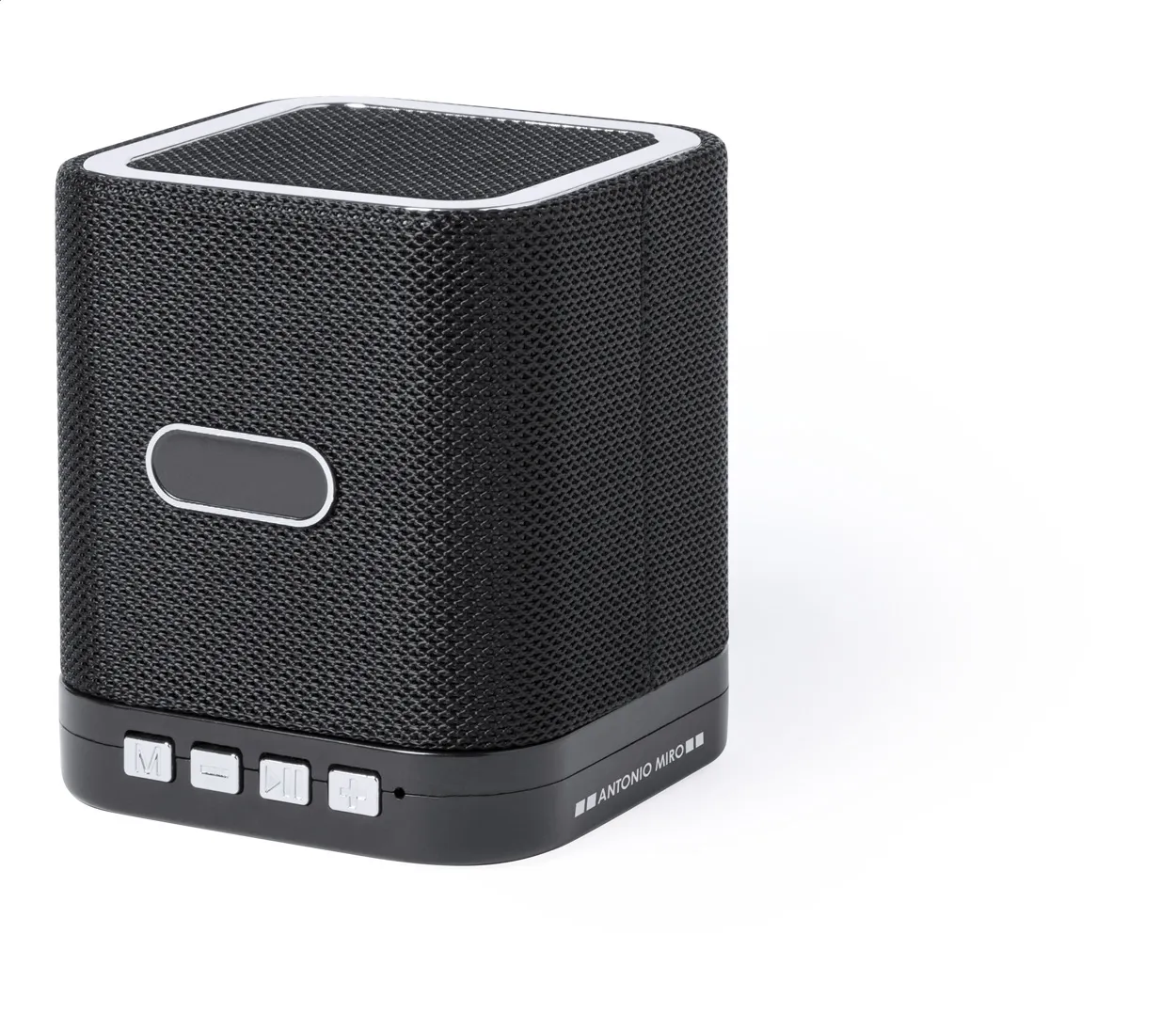 Bluetooth zvučnik snage 3W, s funkcijom za slobodne ruke i utorom za mini SD karticu do 32GB. Uključuje mini USB kabel za punjenje i 3,5mm kabel za pomoćni ulaz. Izrađen od poliesterske tkanine s gumenim dijelom protiv klizanja.