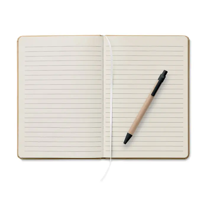 €1.69A5 bilježnica s tvrdim koricama od recikliranog kartona, uvez u tvrdom uvezu, 160 liniranih stranica (80 listova recikliranog papira), elastična traka za zatvaranje, držač za olovku, oznaka za stranicu, uključuje kemijsku olovku na klip s tijelom od recikliranog papira, plava tinta
