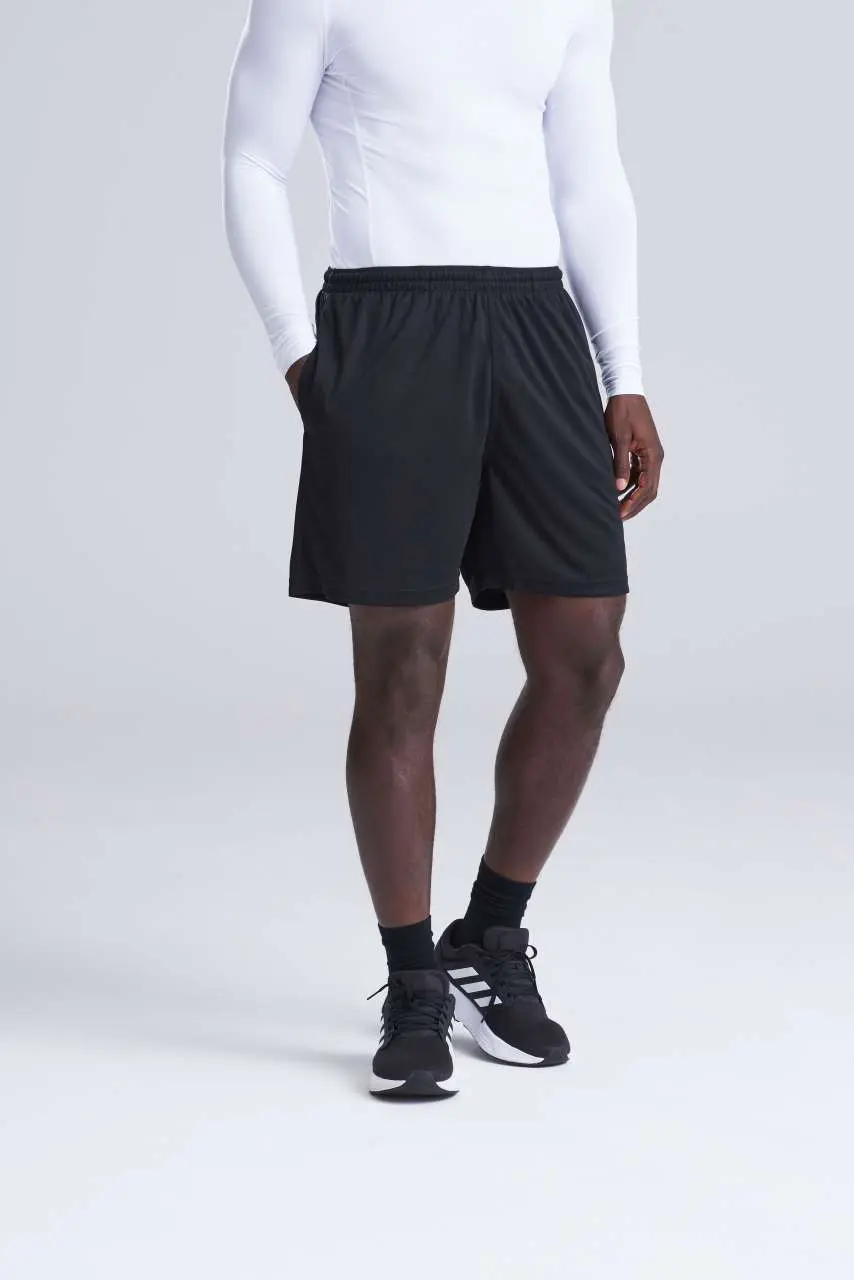 100% poliester opušteni kroj lagani Neoteric™ teksturirani materijal s ugrađenom sposobnošću upijanja vlage brzo sušeći materijal unutarnji džep za ključeve mrežasta podstava elastični pojas unutarnja vezica džepovi na bočnim šavovima odvojiva etiketa UPF 30+ UV zaštita