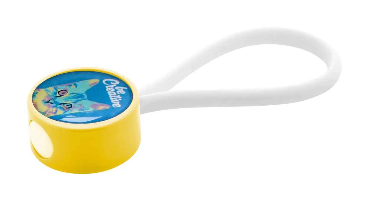 Prilagodljivi, okrugli privjesak za ključeve od plastike s gumiranom vezicom. Proizvod se sastavlja u željenoj kombinaciji boja tijela i vezice. Cijena uključuje tisak s epoksidnom kupolom. Minimalna količina narudžbe: 100 komada.