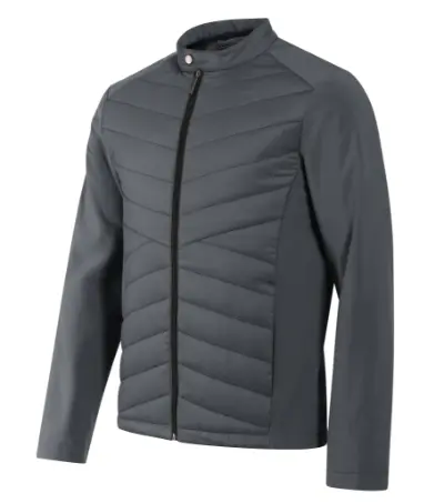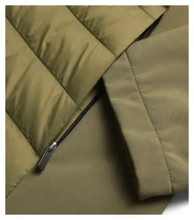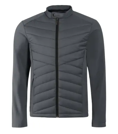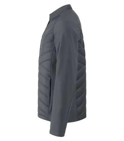 €42.57kombinacija prošivene i softshell tkanine, kroj s bočnim dijelovima, stojeća kragna s gumbom na pritisak, cijelom dužinom patentni zatvarač, bočni džepovi s patentnim zatvaračem, unutarnji džep na prsima s patentnim zatvaračem, pristup za brendiranje na stražnjoj podstavi