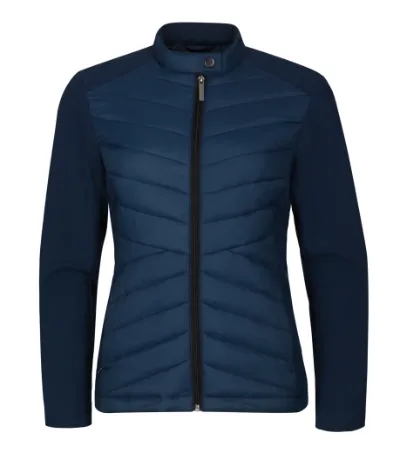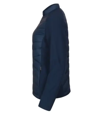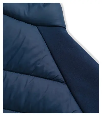 kombinacija prošivene i softshell tkanine, kroj prilagođen bočnim dijelovima, stojeća kragna s pritisnim gumbom, cijelom dužinom patentni zatvarač, bočni džepovi s patentnim zatvaračem, unutarnji džep na prsima s patentnim zatvaračem, pristup za brendiranje na stražnjoj postavi