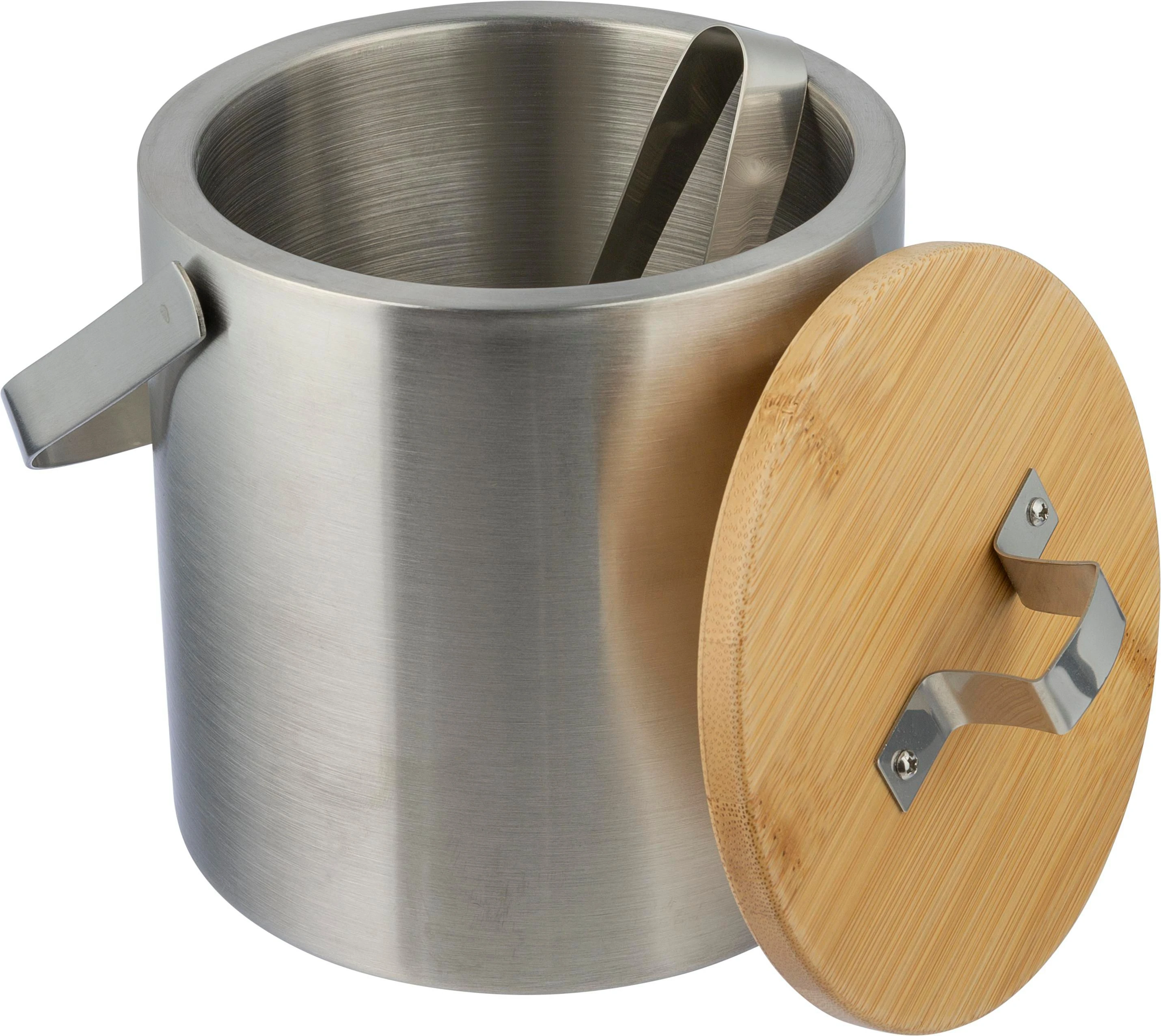 €12.24Dvostijenska posuda za led od nehrđajućeg čelika s bambusovim poklopcem i ručkom za nošenje od nehrđajućeg čelika, unutrašnjost od nehrđajućeg čelika 304, vanjski dio od nehrđajućeg čelika 201, uključuje kliješta za led, zapremnina 1.200 ml, pojedinačno pakirano u smeđu kartonsku kutiju