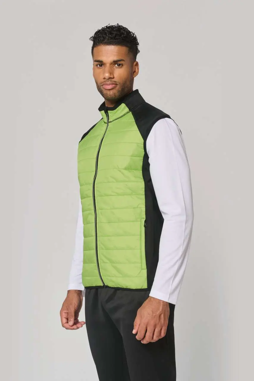 Vanjski dio: 100% poliamid ripstop tijelo s vodootpornim tretmanom 90% poliester/10% elastan strane i leđa (Marl Grey/Sporty Navy: 100% poliester) 100% poliester punjenje Izuzetno udobna tkanina 2 prednja džepa s patentnim zatvaračem Kontrastni patentni zatvarač Elastična obrada na otvorima za ruke i rubu 1 pristup s lijeve strane s patentnim zatvaračem za dekoraciju