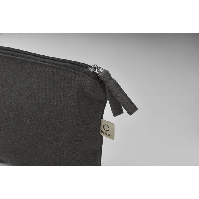 €1.01Kozmetička torbica ili torbica za dodatke izrađena od recikliranog materijala (70% recikliranog pamuka i 30% RPET poliestera) s pripadajućim klipom za zatvarač. 320 gr/m².