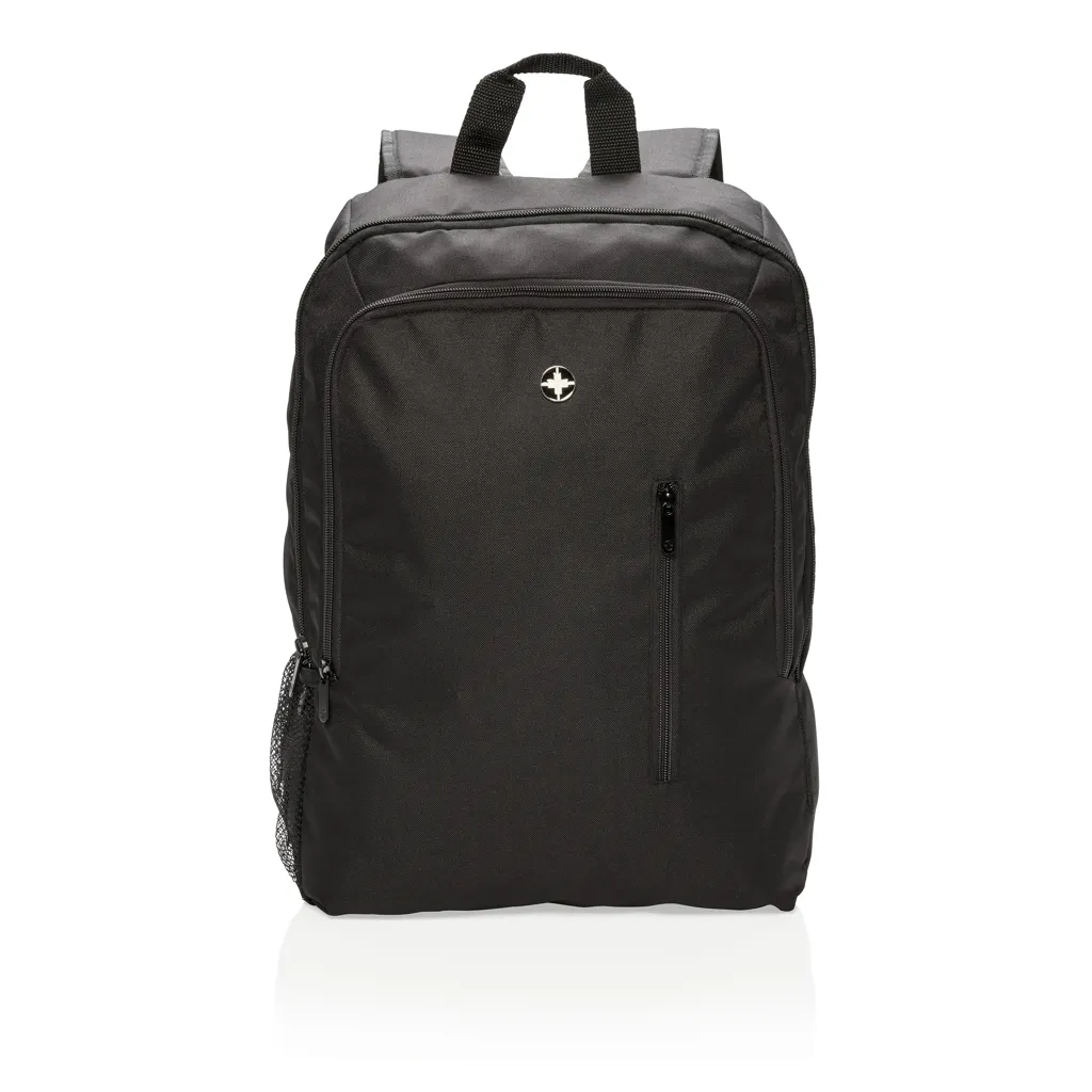 €23.01Streamlined styling and intelligently placed features add up to a minimalist footprint with this 600D & 1680D polyester backpack. 1 big main compartment sized to fit laptops with up to 17 inch displays. Second compartment with practical organisation for everything else you need to carry. With side mesh water bottle pocket. PVC free.