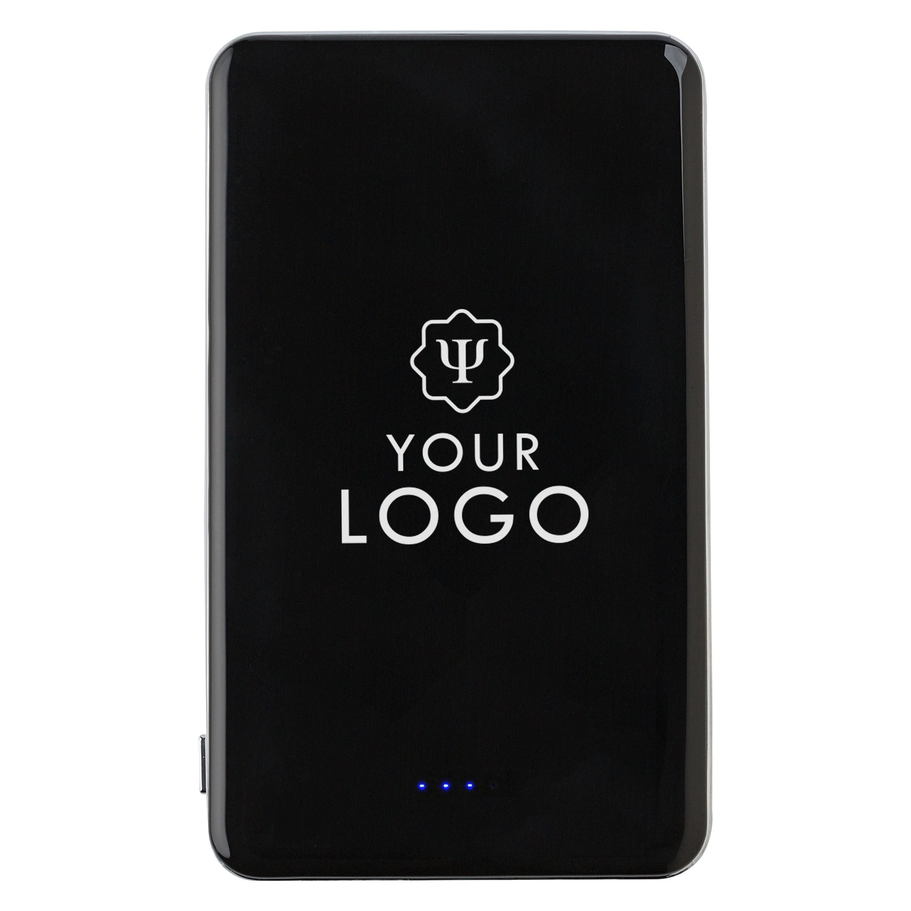 €11.41ABS power bank with a capacity of 5.000mAh, Li-polymer battery, input of 5V/1000mA, and output of 1500mA/2100mA/5V. Including 5 blue LED power indication lights and a USB/micro USB cable (approx. 32 cm).