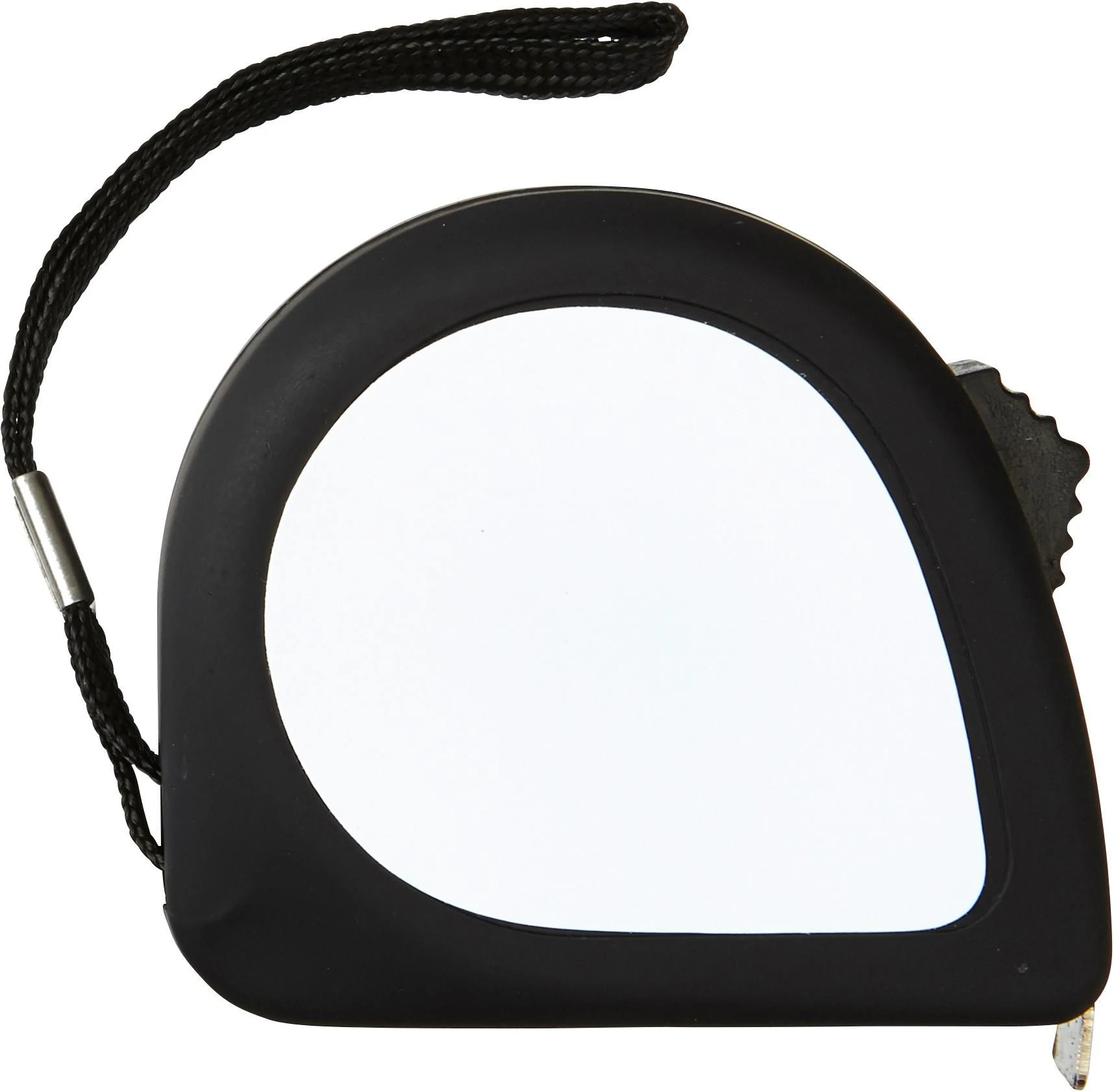 Metal and rubber tape measure (2 meter) with a wrist strap and belt clip attachment.