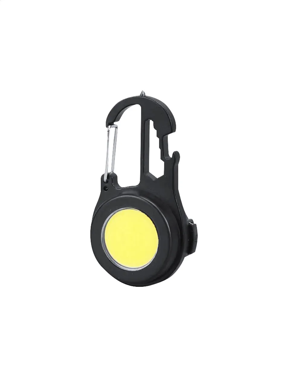 Aluminium multitool with 20 COB lights, 3 light modes, 10 functions and carabiner. With built-in rechargeable battery.