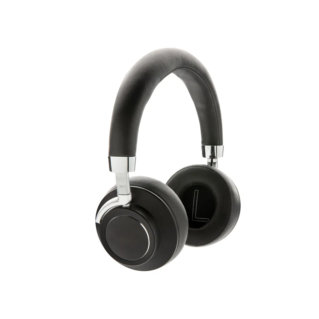 aluminium and PU. The headphones use BT 4.2 for smooth operation and connectivity. The 250 mAh battery allows you to enjoy up to 8 hours play. With built in microphone to answer calls. The item can be folded flat into the included pouch to enable you to take the headphones wherever you go. Packed in luxury gift box.