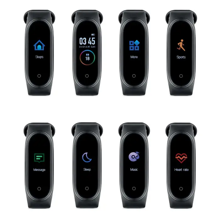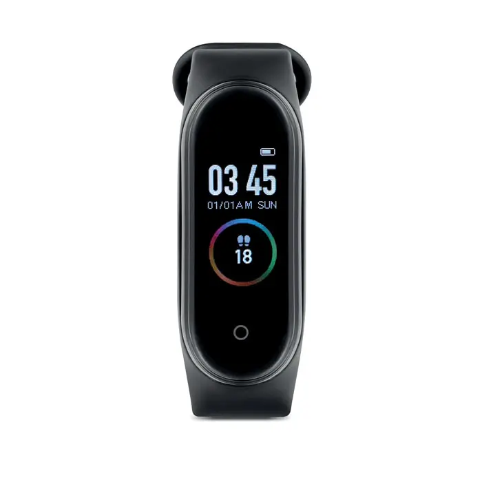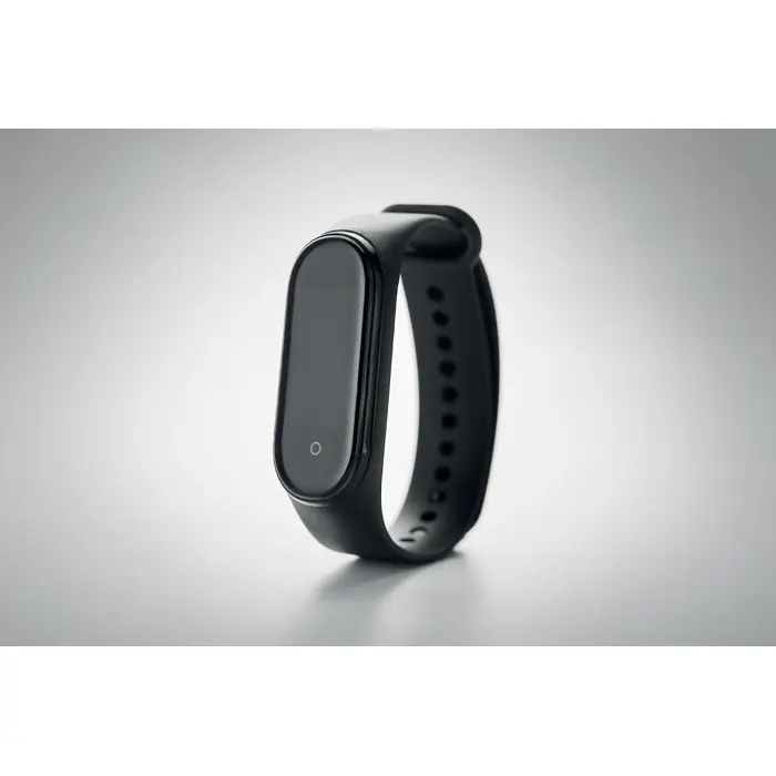 €7.995.0 wireless smart health watch in ABS with silicone strap. 0.96 inch touch LCD display. Rechargeable Li-Pol 90 mAh battery. Requires a free app (HryFine available in both iOS and Android).