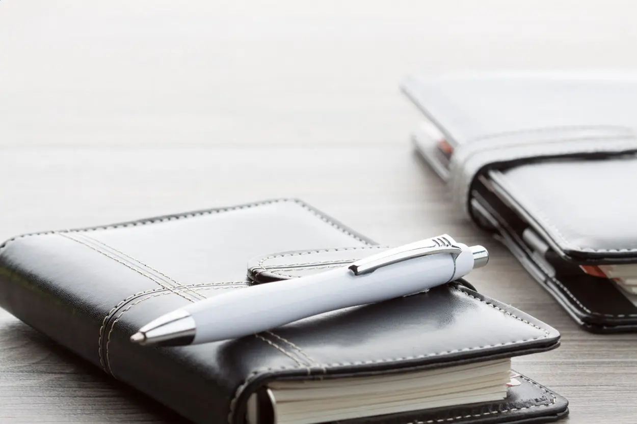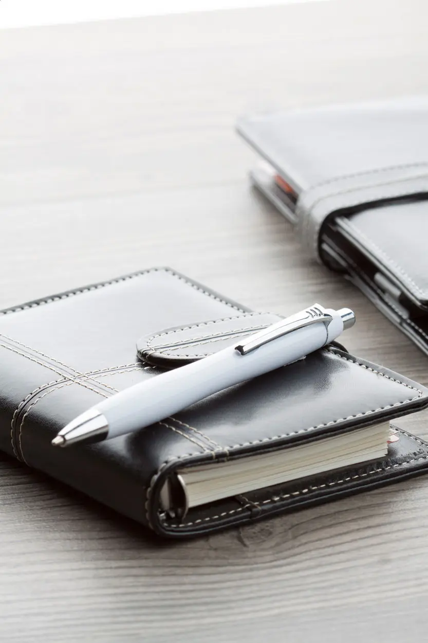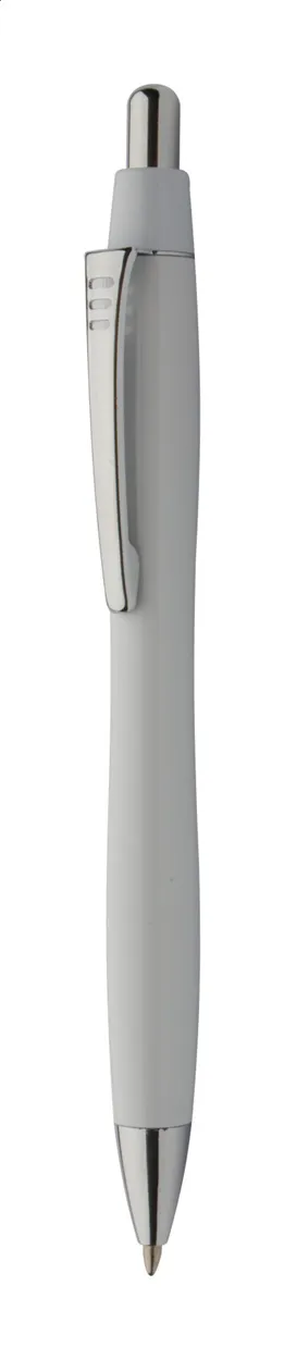 Plastic ballpoint pen with solid barrel, metal clip, chrome tip and button. With blue refill.