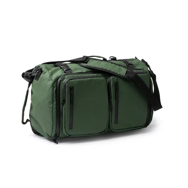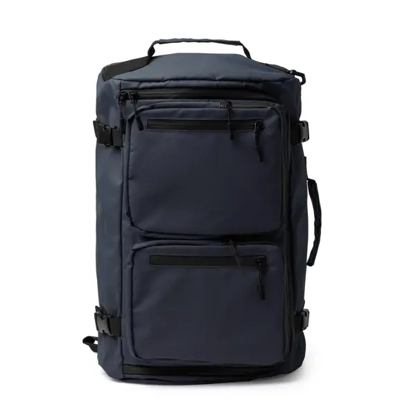 Multifunctional bag/backpack made of PU with 600D Ripstop polyester. Water resistant. Large main compartment with full opening. Multiple exterior pockets. Footwear compartment. Reinforced handle. All compartments have a waterproof zipper. Includes padded shoulder strap with backpack functionality.