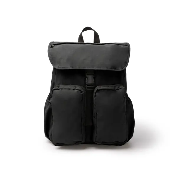 Backpack made from soft nylon with a large main compartment featuring an adjustable drawstring closure and safety stopper. Features a buckled lid on the top with a smaller front pocket, in addition to two medium front pockets with zip closure. Inside, it incorporates a compartment for laptops up to 15". Padded back and shoulder strap.