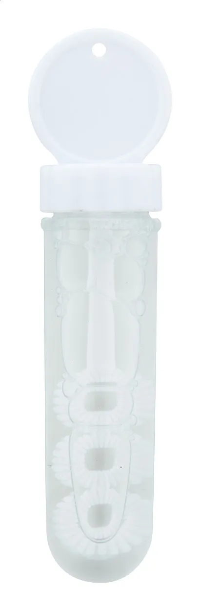 Bubble blower in coloured plastic. With 30 ml bubble liquid.