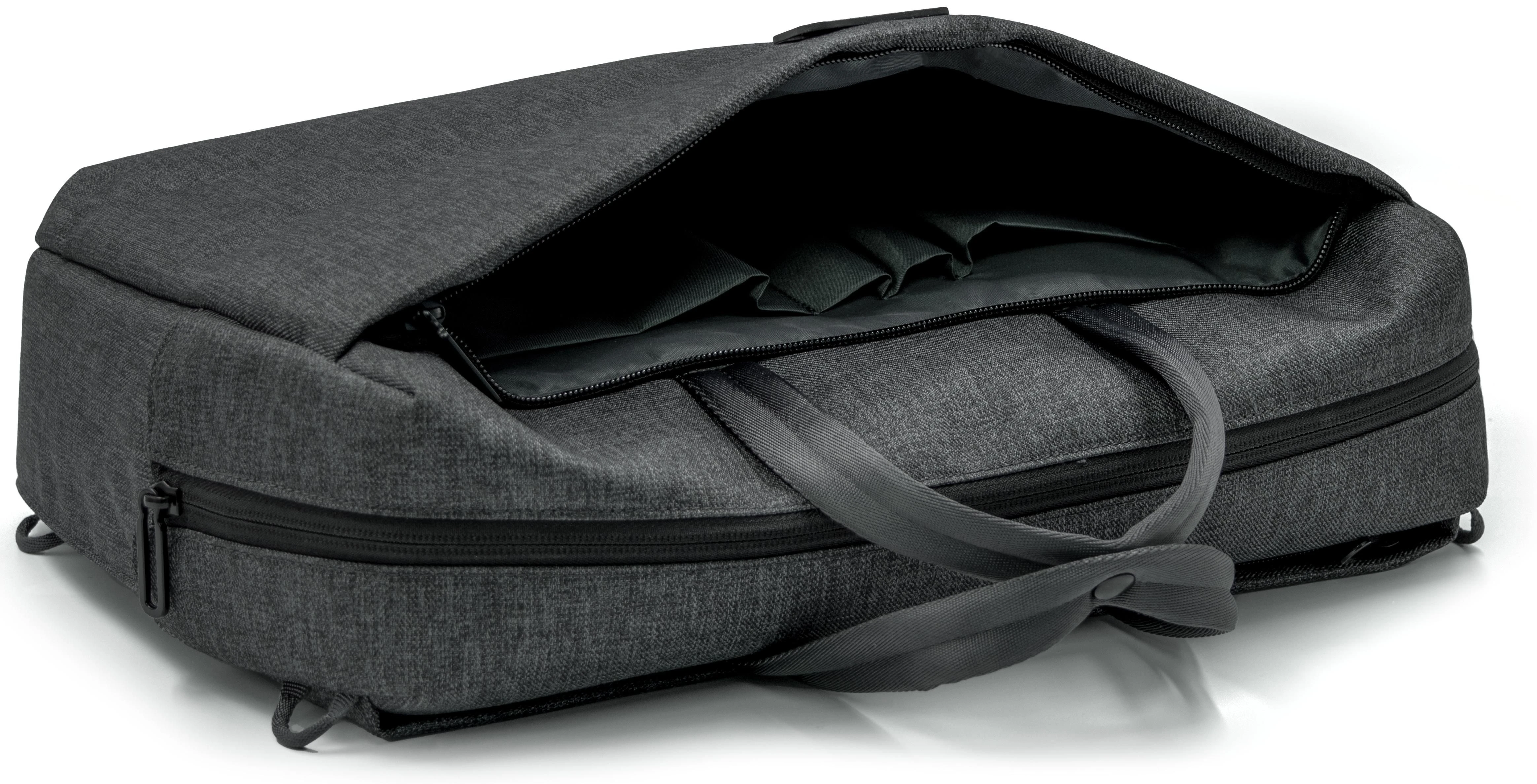 €41.91BrandCharger Metro workbag made from recycled PET bottles, designed for versatile use as a handheld, shoulder, or crossbody backpack. Features a spacious main compartment with padded sleeve for laptops up to 16 inches, plus multiple pockets for tablet, phone, charger, cables, pens, and notebooks. Includes exterior side pockets for a water bottle and umbrella. Made from durable, water- and stain-repellent touring fabric. Equipped with zipper closure, carrying strap, and four compartments.
