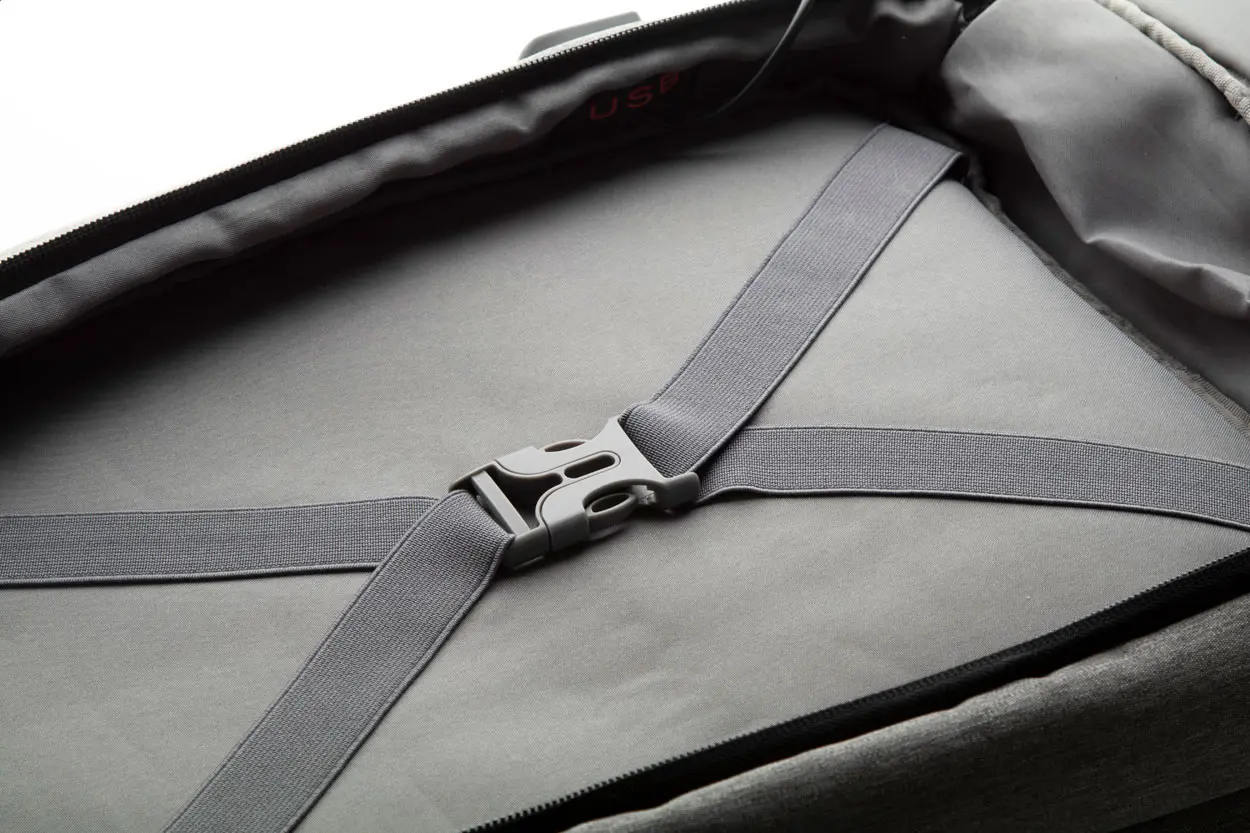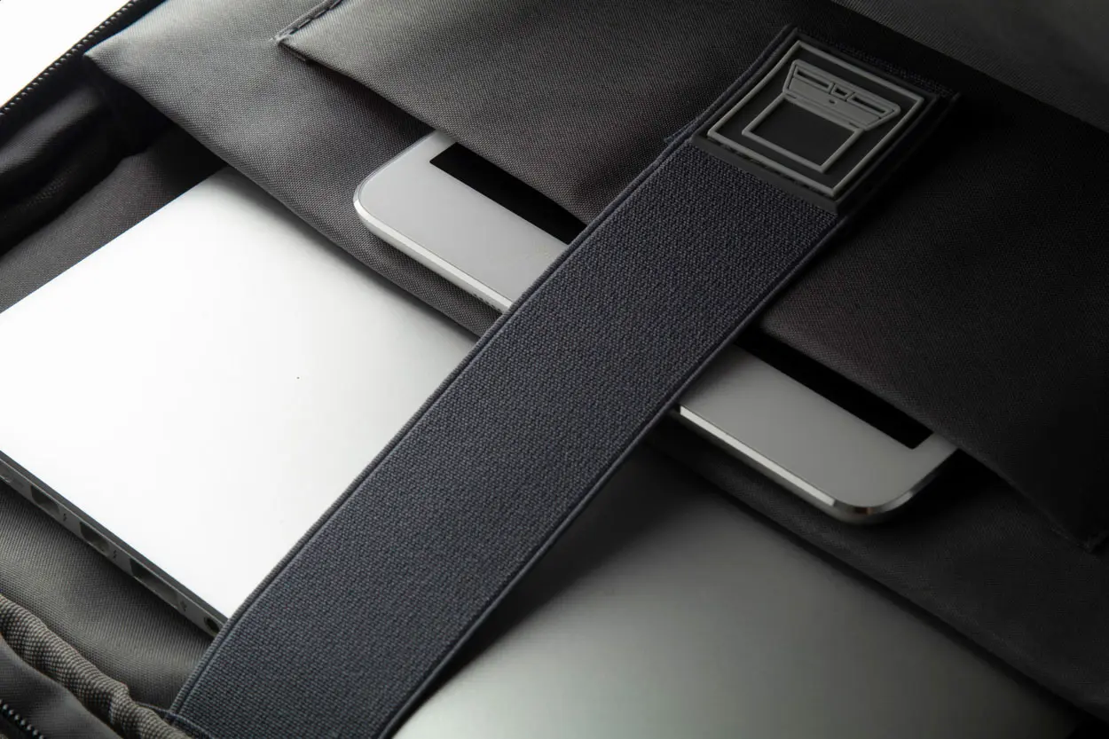 €53.65Backpack with multiple zipped compartments, inside organiser pockets, padded laptop (15") and tablet compartments, ergonomic back and shoulder straps. With trolley strap and built-in USB connection for power banks. 400D polyester.