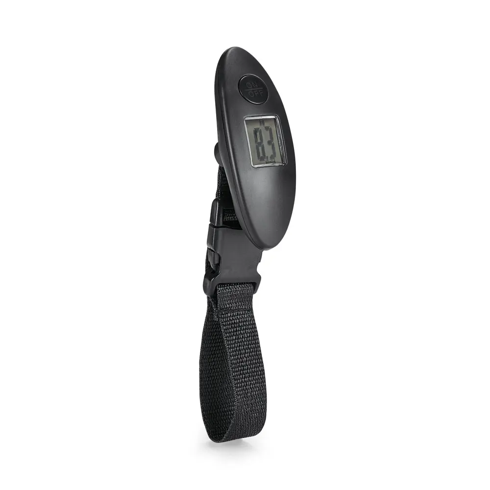 Mini digital ABS scale for a maximum weight of 40kg. Ideal for suitcases. Includes 1 CR2032 battery. 37 x 100 x 27 mm