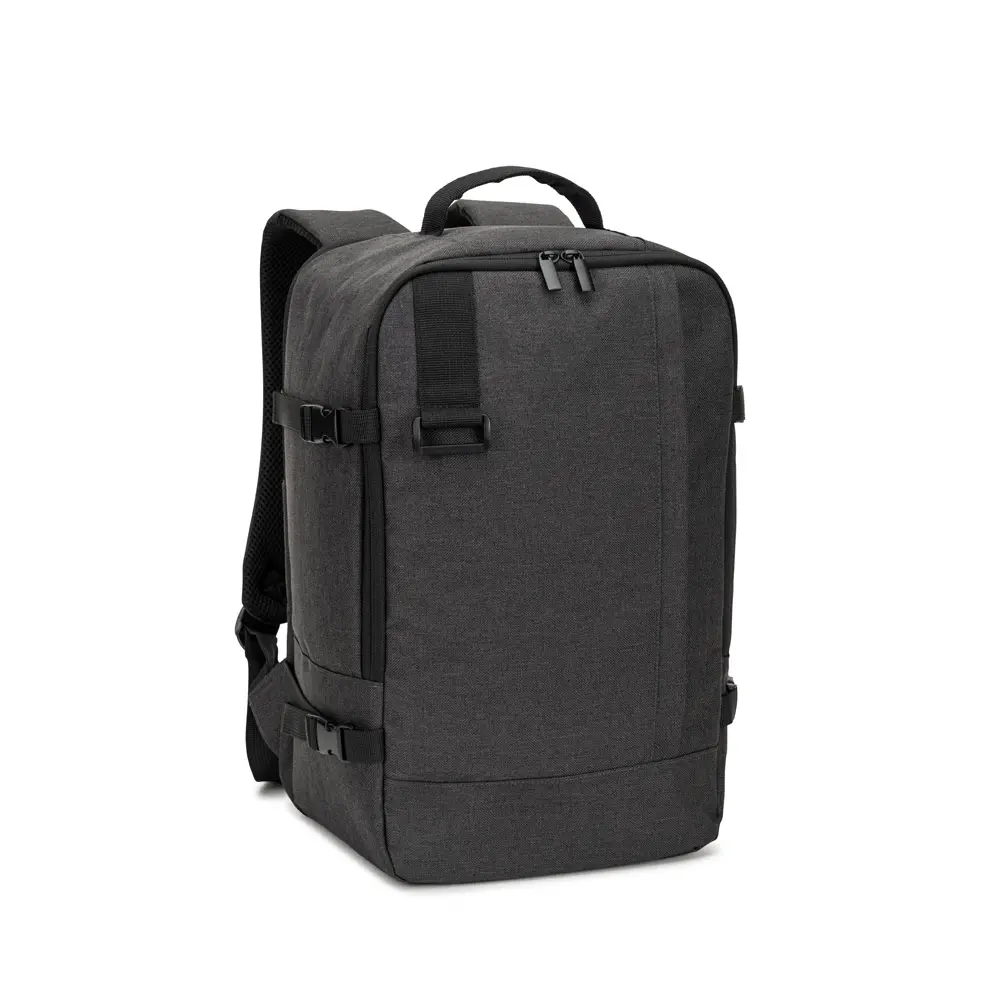 cies. backpack made from high-density 600d recycled polyester, meeting airline size requirements