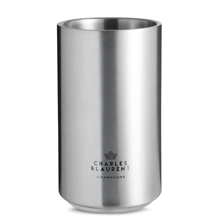 Double wall stainless steel bottle cooler in round shape.