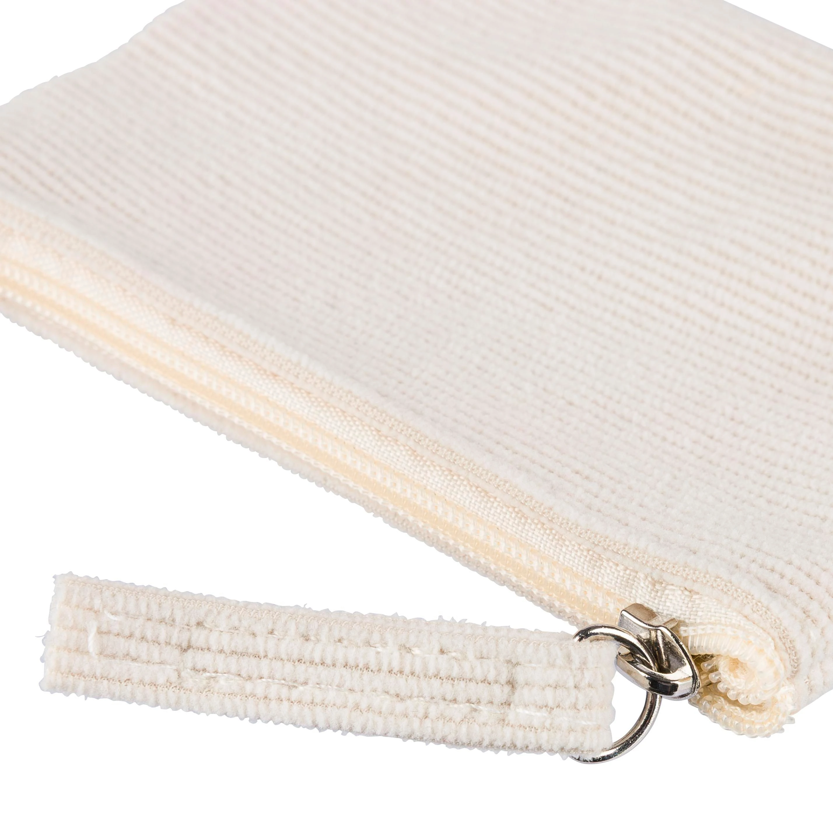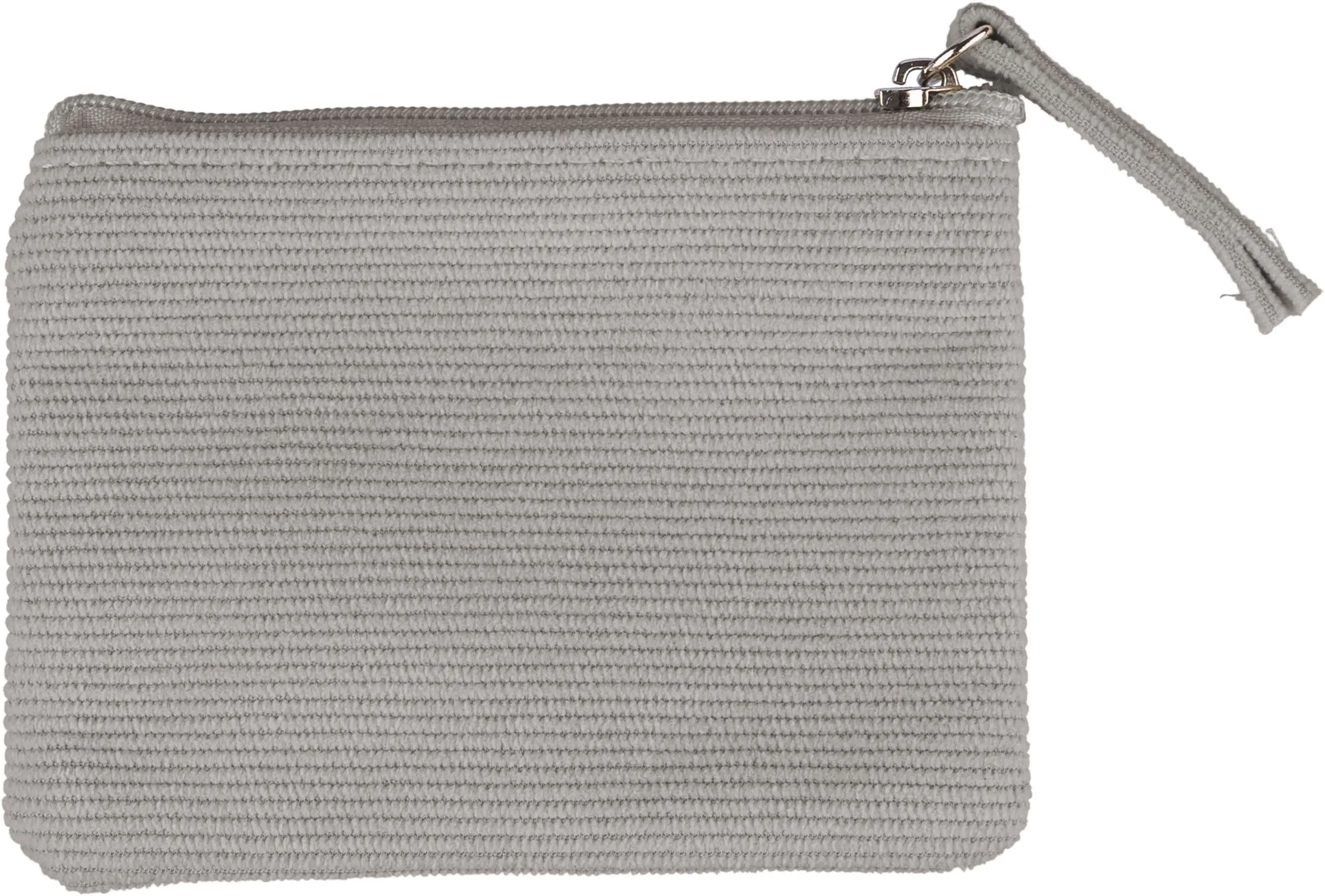 Corduroy zippered key wallet with secure zipper closing.