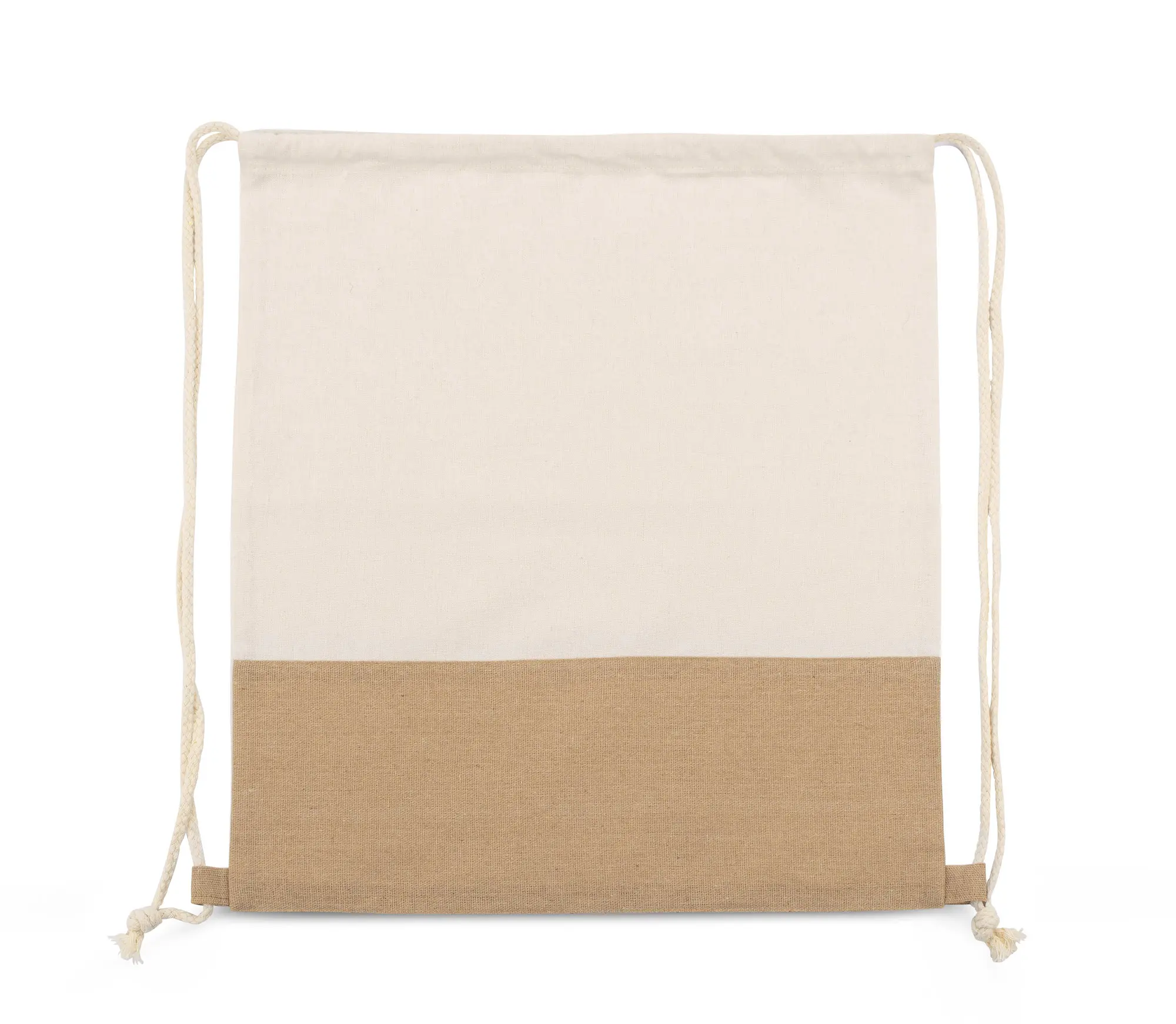 €3.35The JUTIK bag is made of cotton (160g/m2) combined with a jute-like material. The whole looks very natural and interesting. The bag has one compartment and is laced with cotton strings.