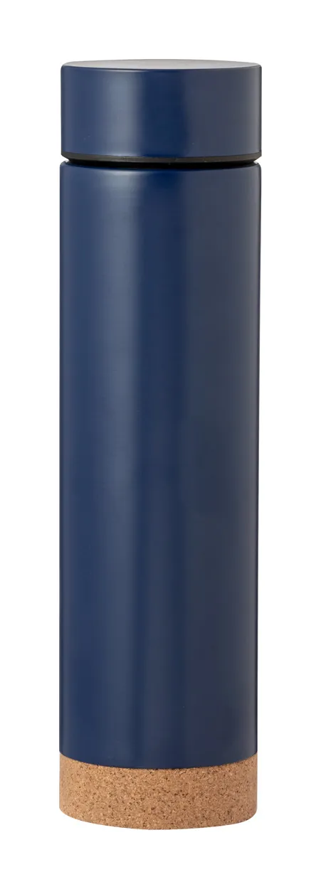 Double-wall, stainless steel vacuum flask with natural cork base and tea infuser, 470 ml. Insulation keeps drinks hot for 6 and cold for 15 hours.
