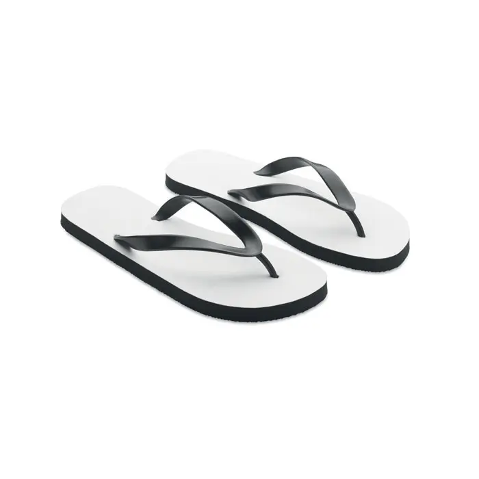 €6.46Sublimation beach slippers with PVC straps. Sole made of rubber with polyester top cloth. Size 44-46. Item can only be ordered printed.