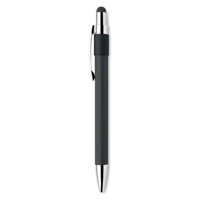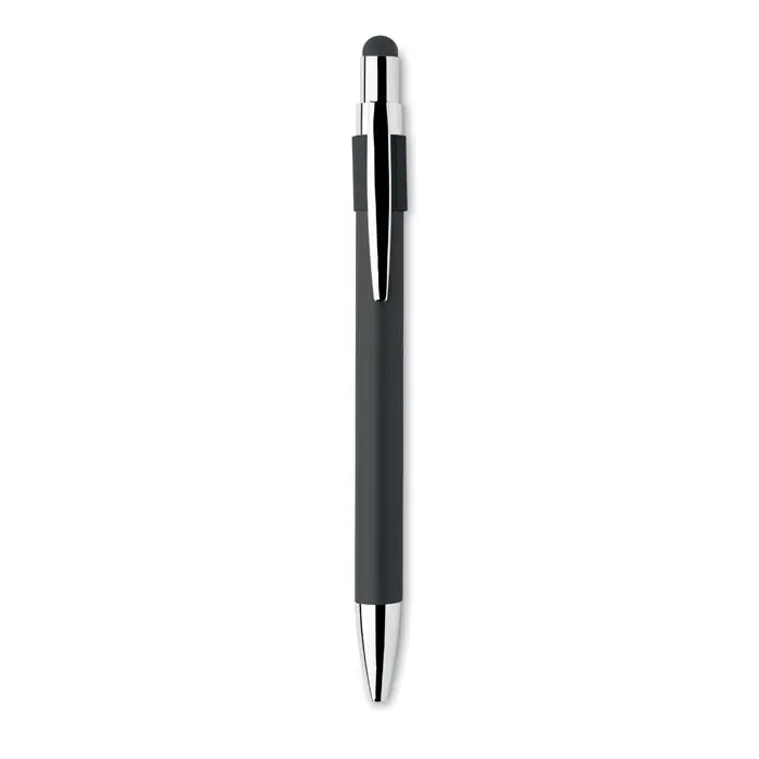 Stylus push ball spinner pen in recycled aluminium. Blue ink.