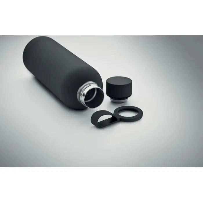 €5.72Double wall vacuum insulating bottle in recycled stainless steel (90% recycled stainless steel and 10% stainless steel) with rubber finish and silicone handle. Capacity: 500 ml.