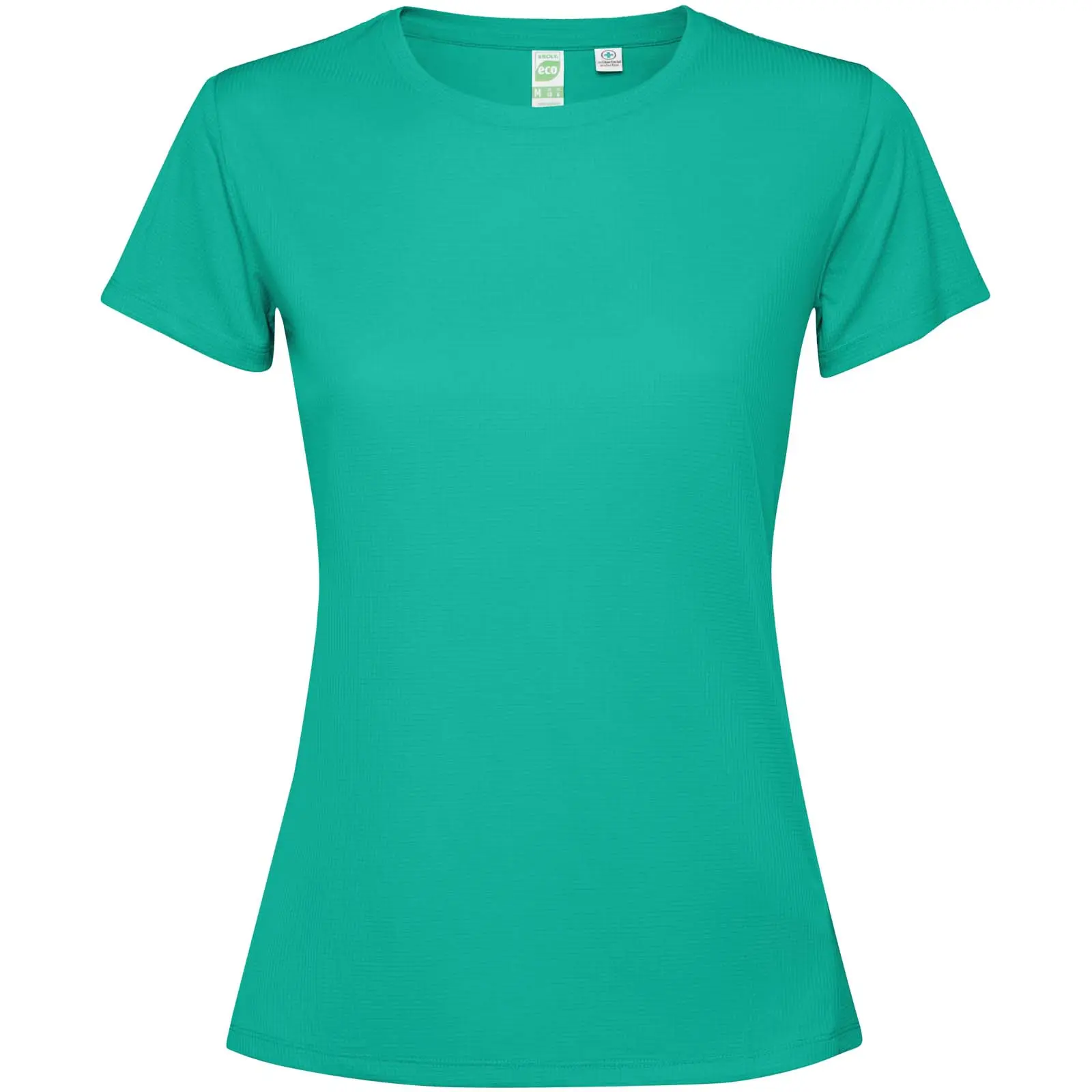 €3.39Short-sleeved fitted technical t-shirt for women. Collar with matching seams. Back hem slightly longer than the front. Side seams shifted forward.