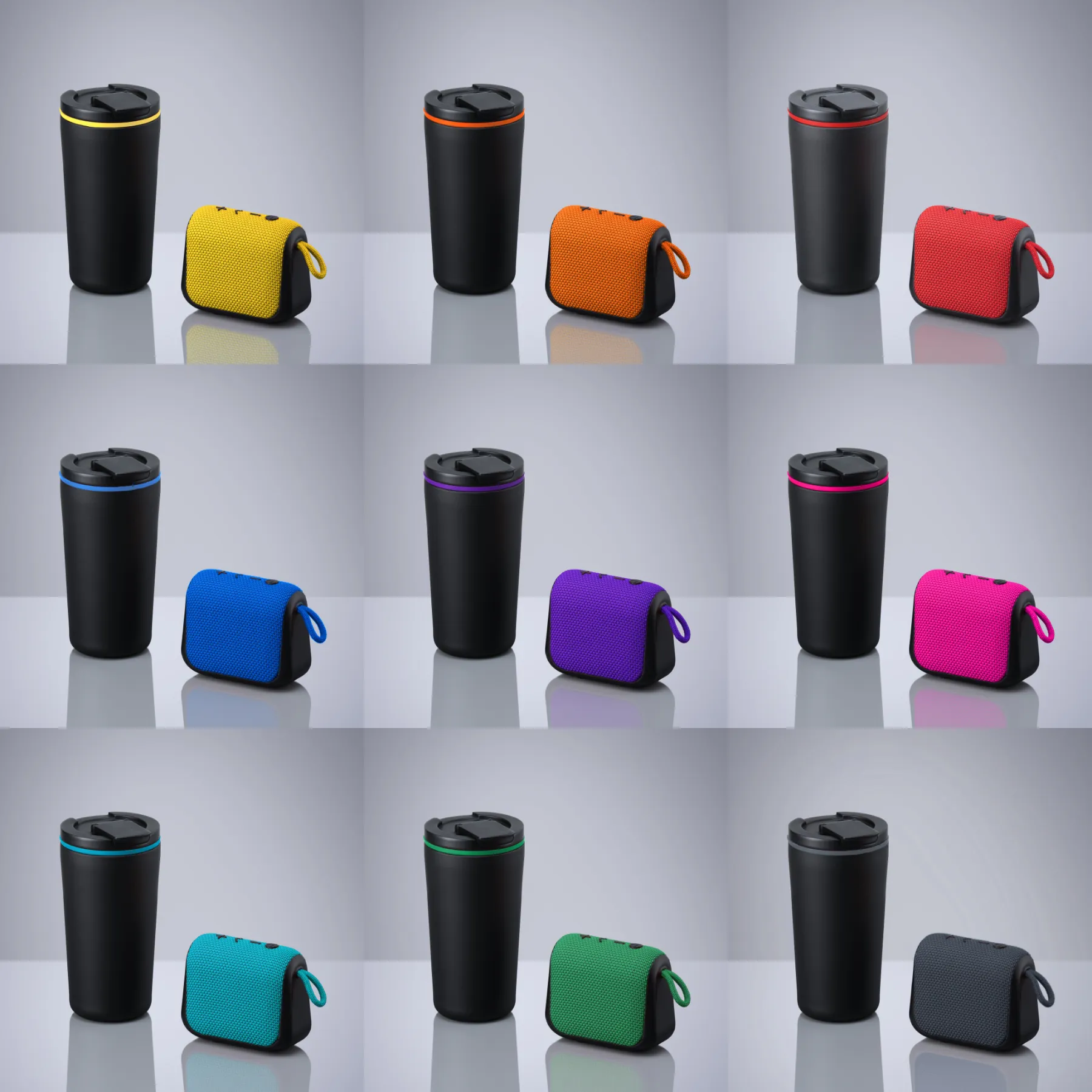€49.50A practical set combining a sleek thermal mug and a compact wireless speaker, perfect for everyday use. The mug, made from high-quality POSCO stainless steel, keeps beverages hot or cold while the colorful silicone gasket ensures a leak-proof seal. The portable Bluetooth speaker delivers up to 8 hours of playtime, is made from durable silicone and ABS, and features a convenient loop for easy carrying or attachment.