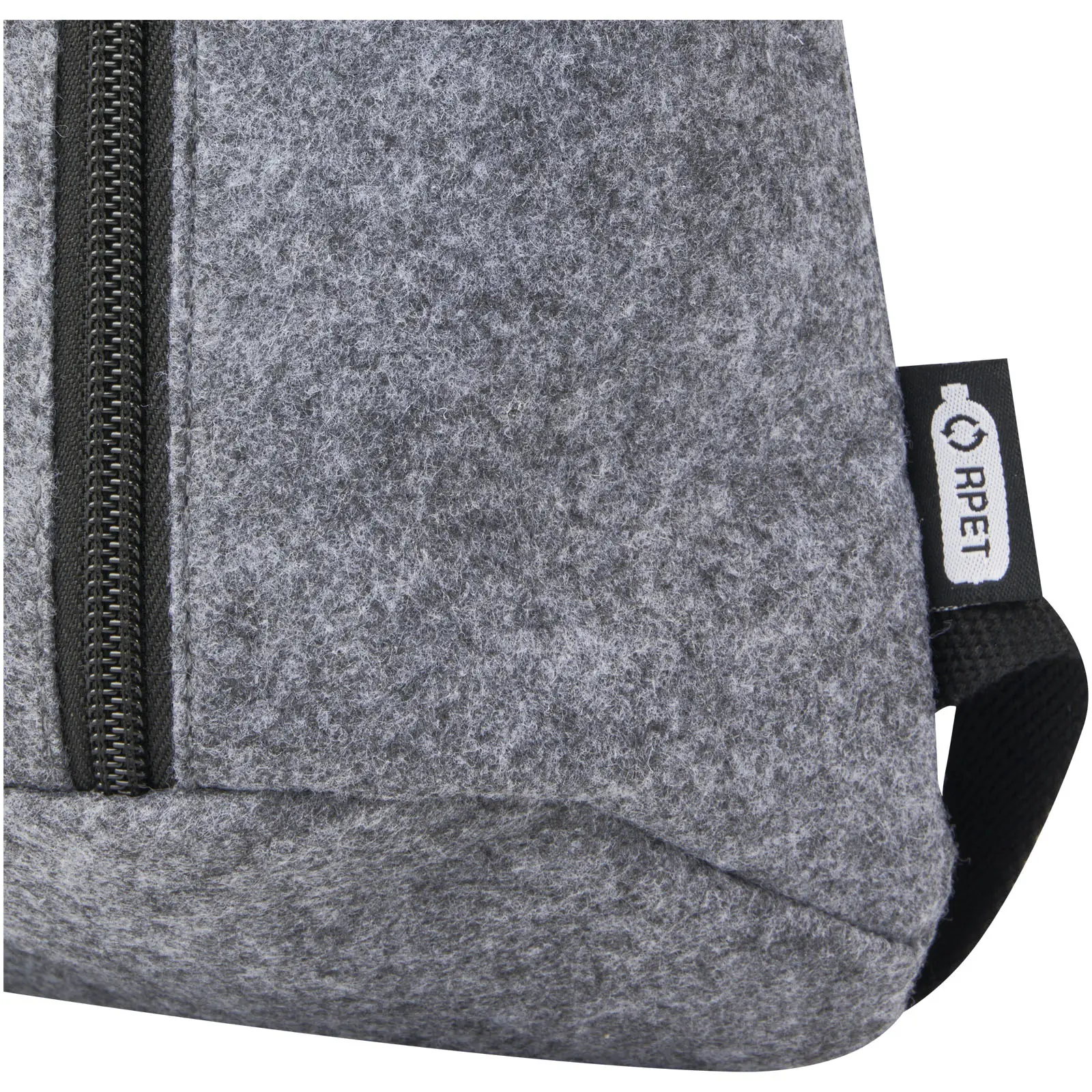 Practical cooler backpack made of high quality soft and durable GRS certified recycled felt. Features a main zippered compartment lined with food safe, high density thermal PEVA insulation keeping beverages and refreshments cold for hours. Front zippered pocket. Adjustable shoulder straps and a cotton, woven carry handle. Easy to clean. Capacity: 7 litres.