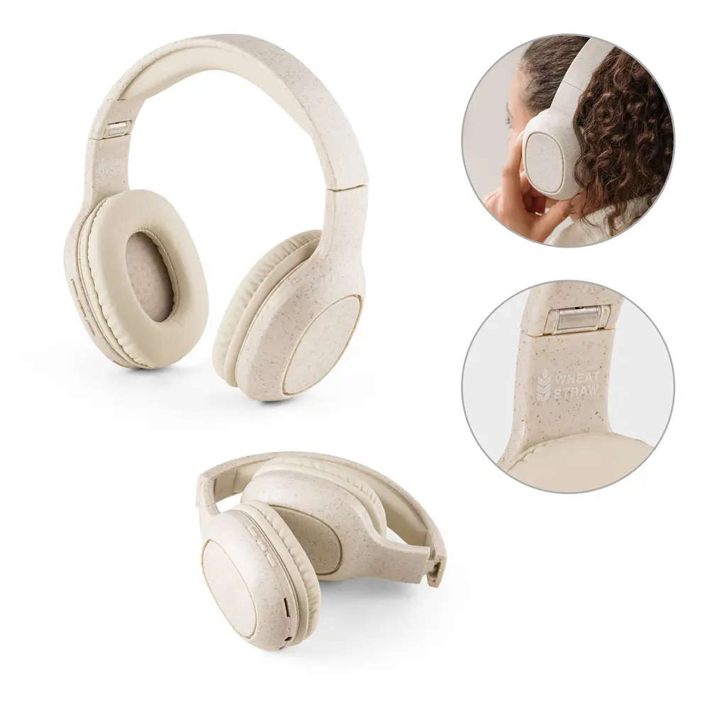 feynman. foldable wireless headphones with 4-hour battery life in wheat straw and abs
