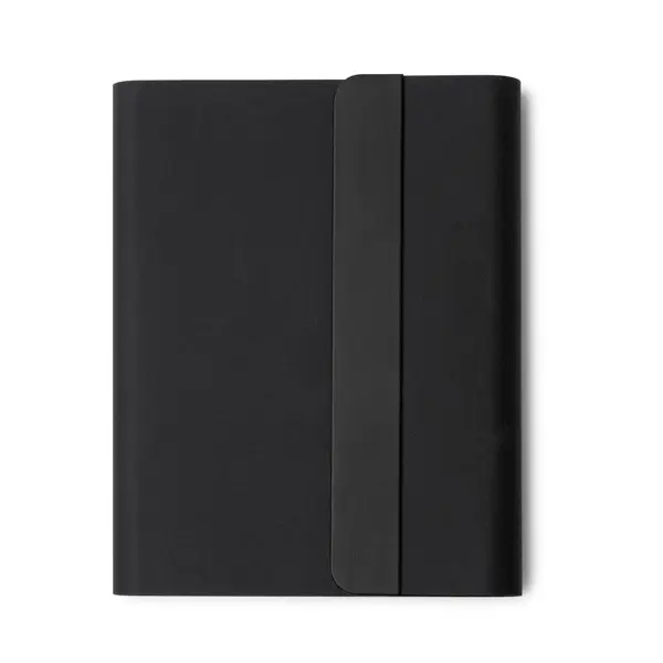 €41.45RPET multifunction folder with 5000 mAh Power Bank. Wireless charging base for smartphone. Includes 64-sheet A5 single-line notebook. Card compartment, smartphone holder and pen. Presentation in design box.