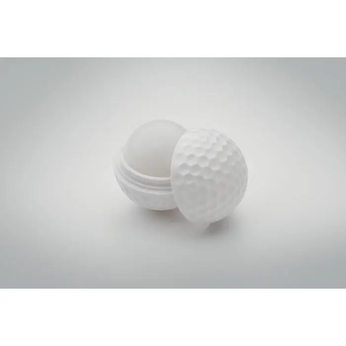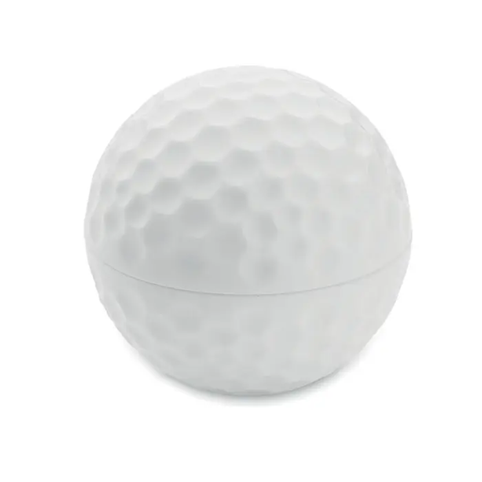 Lip balm in ABS in golf ball case shape. SPF10. Flavour: Vanilla.