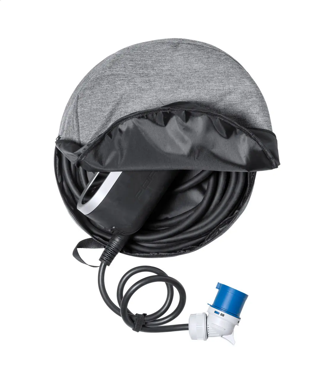 Zipped bag for electric car charger cable with 2 handles. 600D RPET polyester.