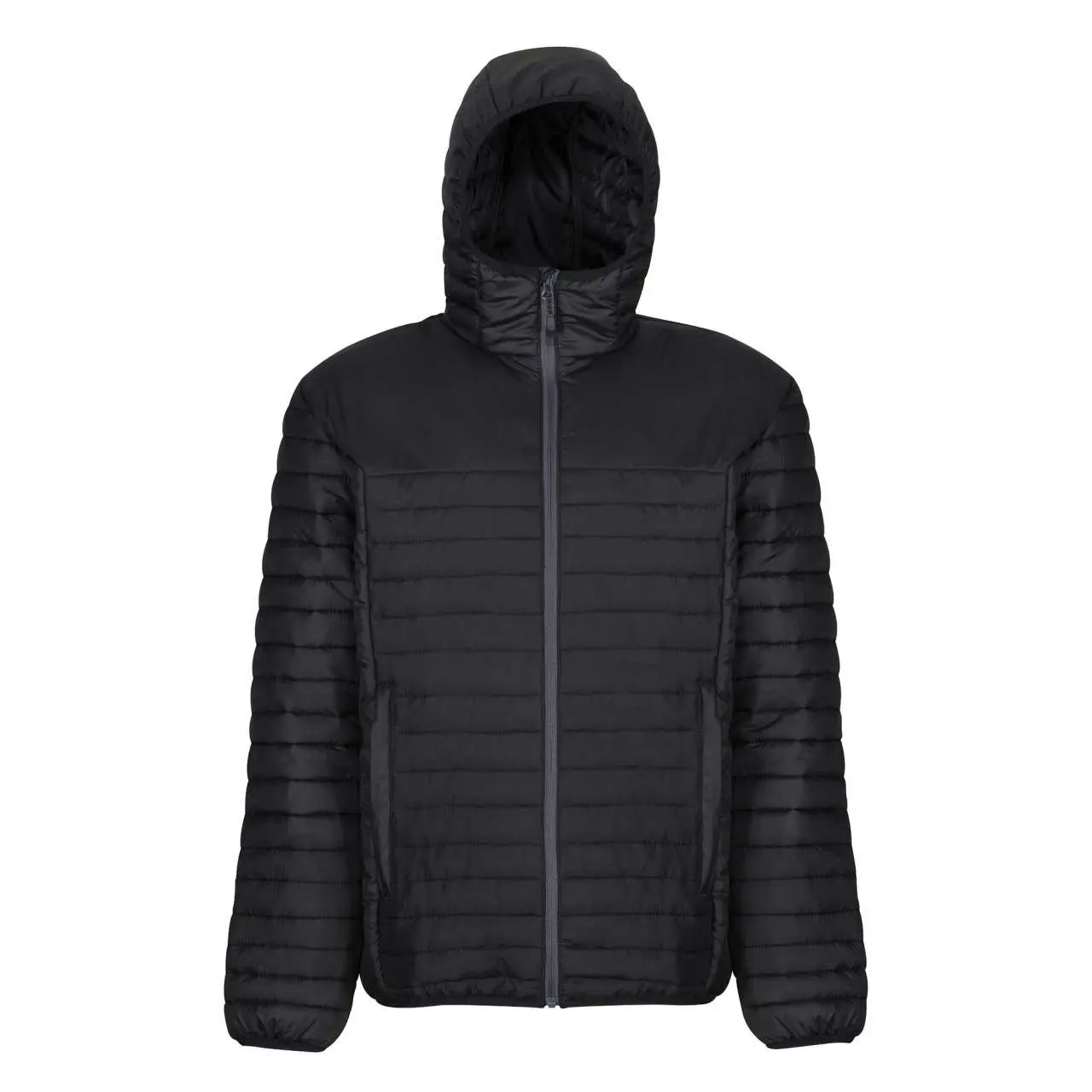 Stretch binding to hood face, cuffs and hem