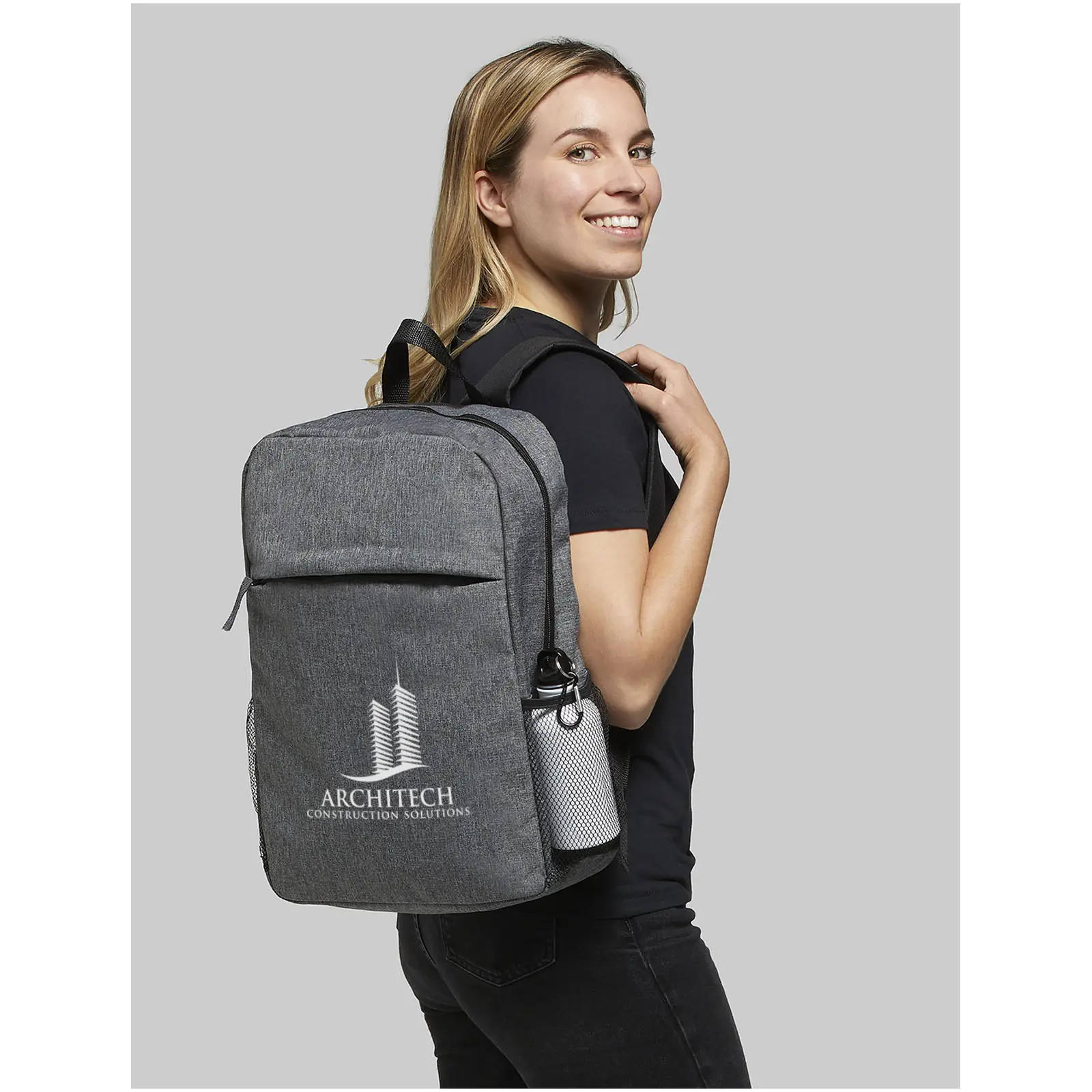 €5.71Features a large zippered main compartment with a 15\" laptop sleeve and a front zippered compartment for quick access to mobile devices. Comes with convenient padded shoulder straps, grab handle and mesh water bottle pockets. There may be minor variations in the colour of the actual product due to the nature of the fabric dyes, weaves, and printing. Capacity: 18 L.