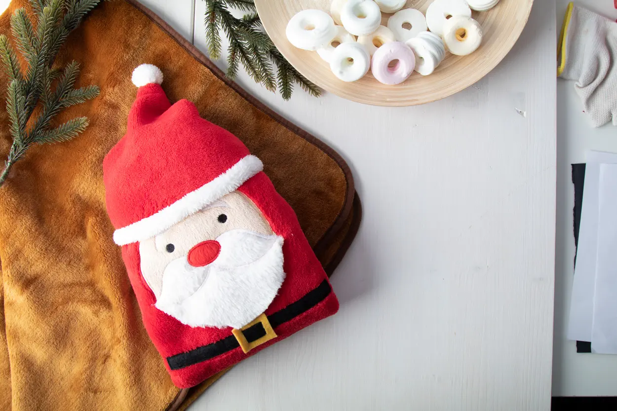 Polar fleece blanket for kids folded into Christmas figure. 100% polyester, 260 g/m².