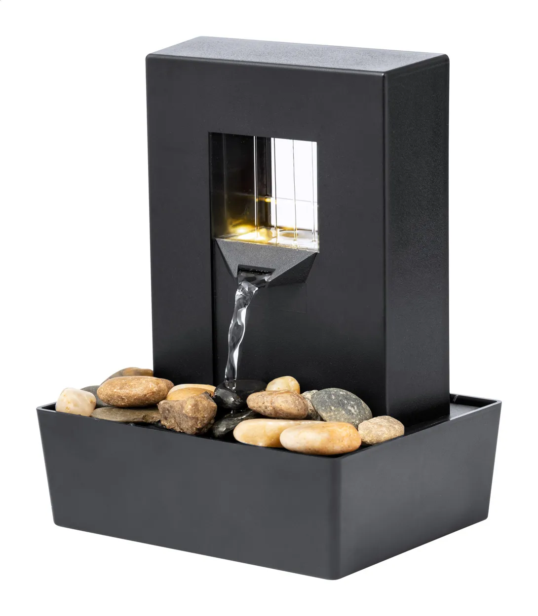 Decorative water fountain with LED lights and stones. Operates with 3 AA batteries, delivered without battery.